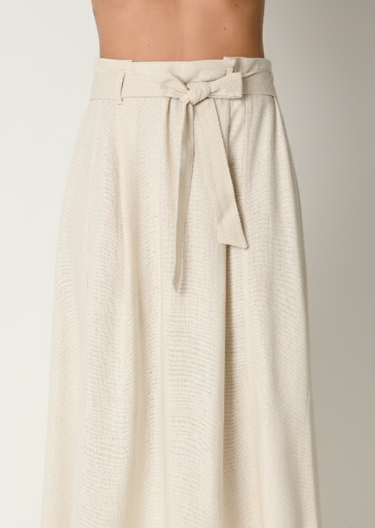 A Saia com Amarração é a peça perfeita para mulheres sofisticadas e modernas. Seu design evasê e cós alto garantem um look elegante e atual. Feita em linho e viscose, proporciona conforto fresh e estilo em qualquer ocasião. Ideal para o alto verão e festividades.