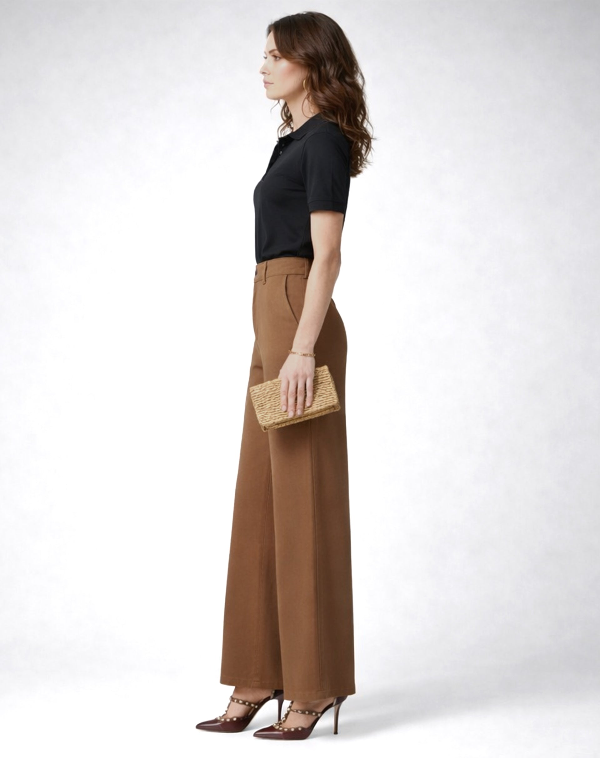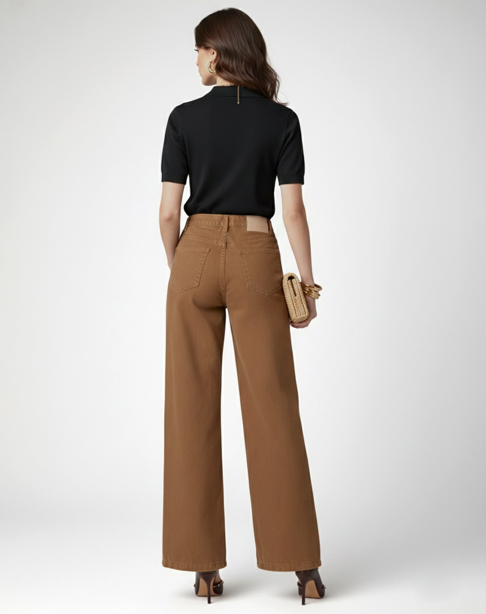 Calça Wide Leg Sarja - Marrom