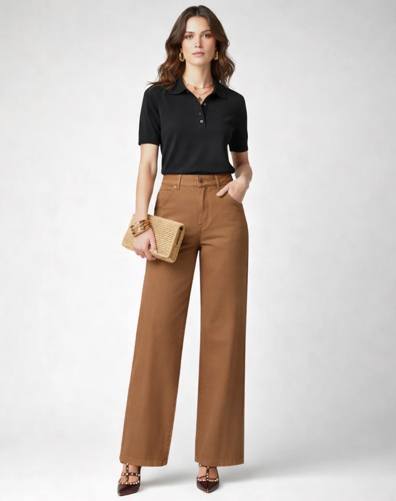 Calça Wide Leg em sarja 100% algodão, um clássico que nunca sai das tendências. Versátil e atemporal, é ideal para composições modernas.