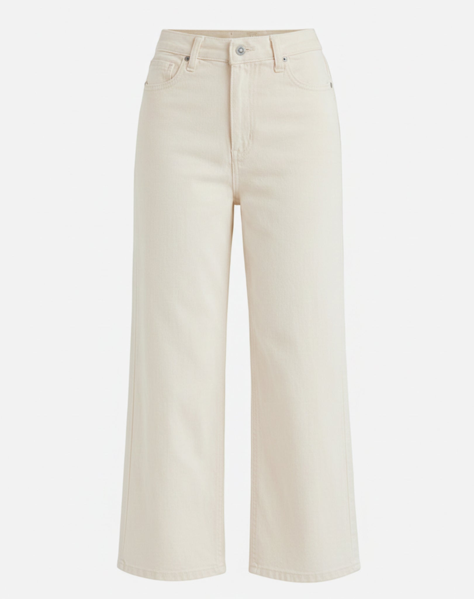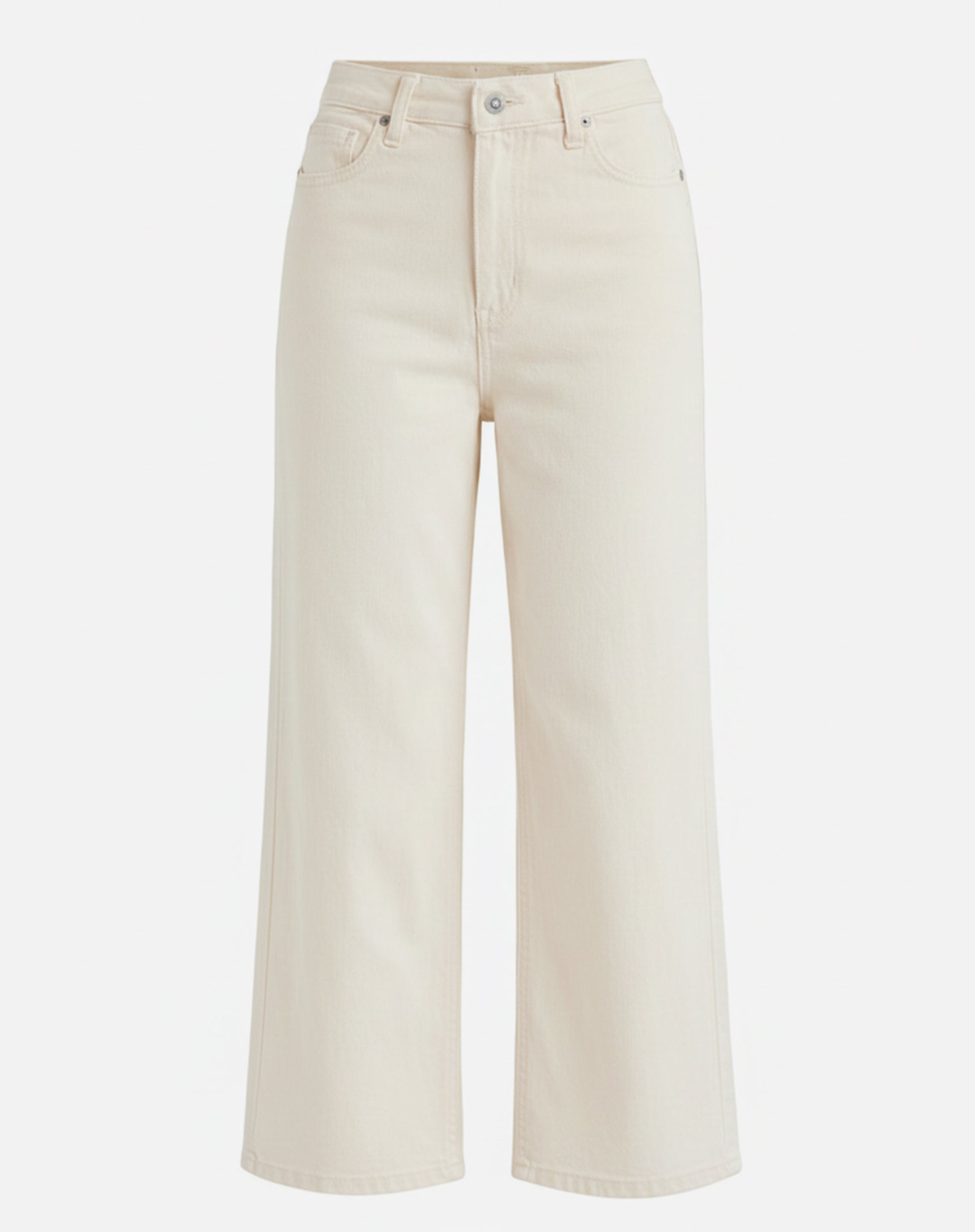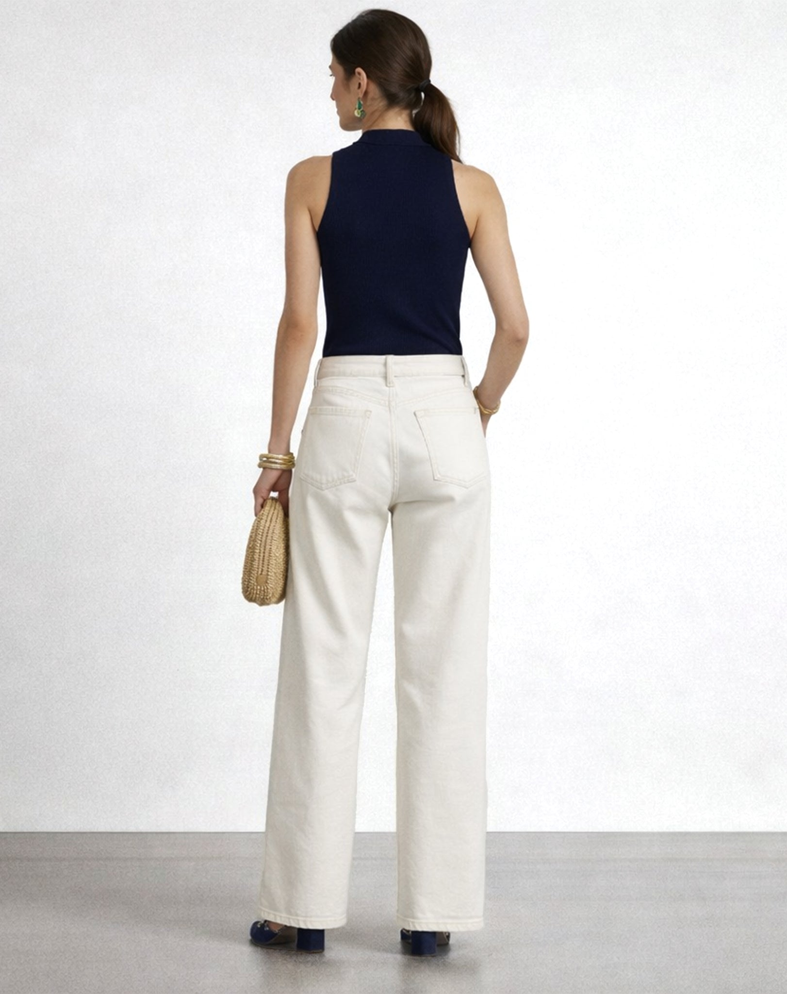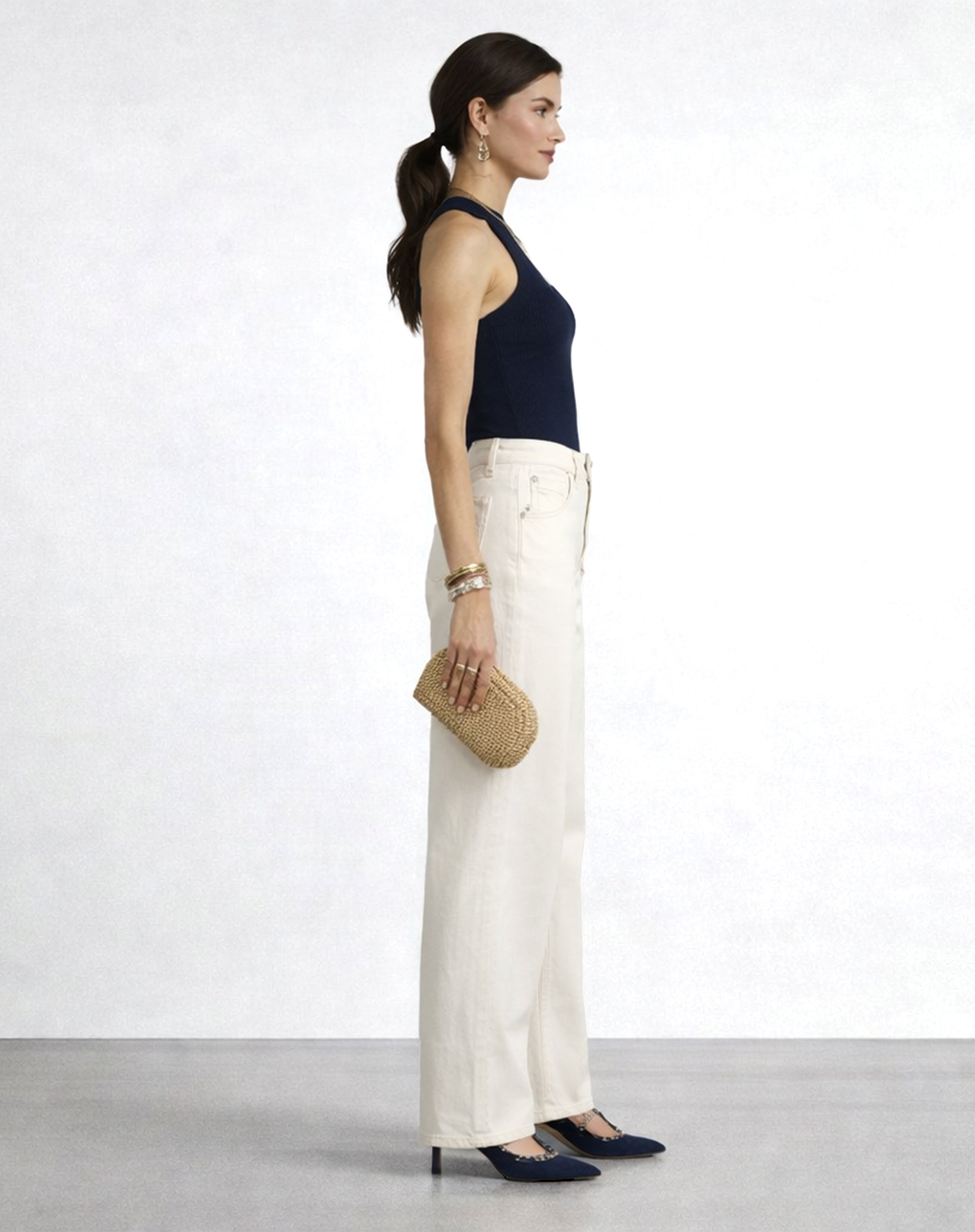 Calça Wide Leg em sarja 100% algodão, um clássico que nunca sai das tendências. Versátil e atemporal, é ideal para composições modernas.