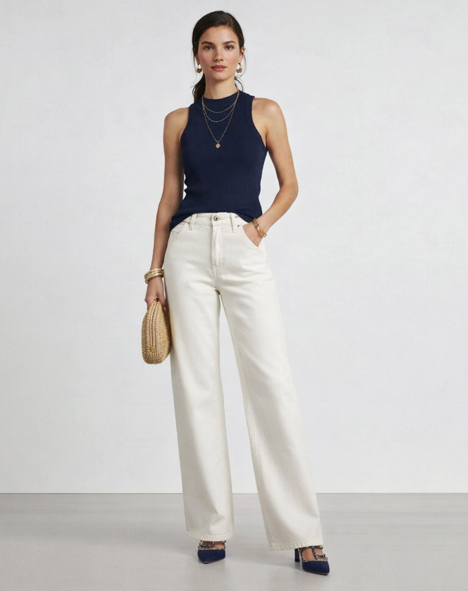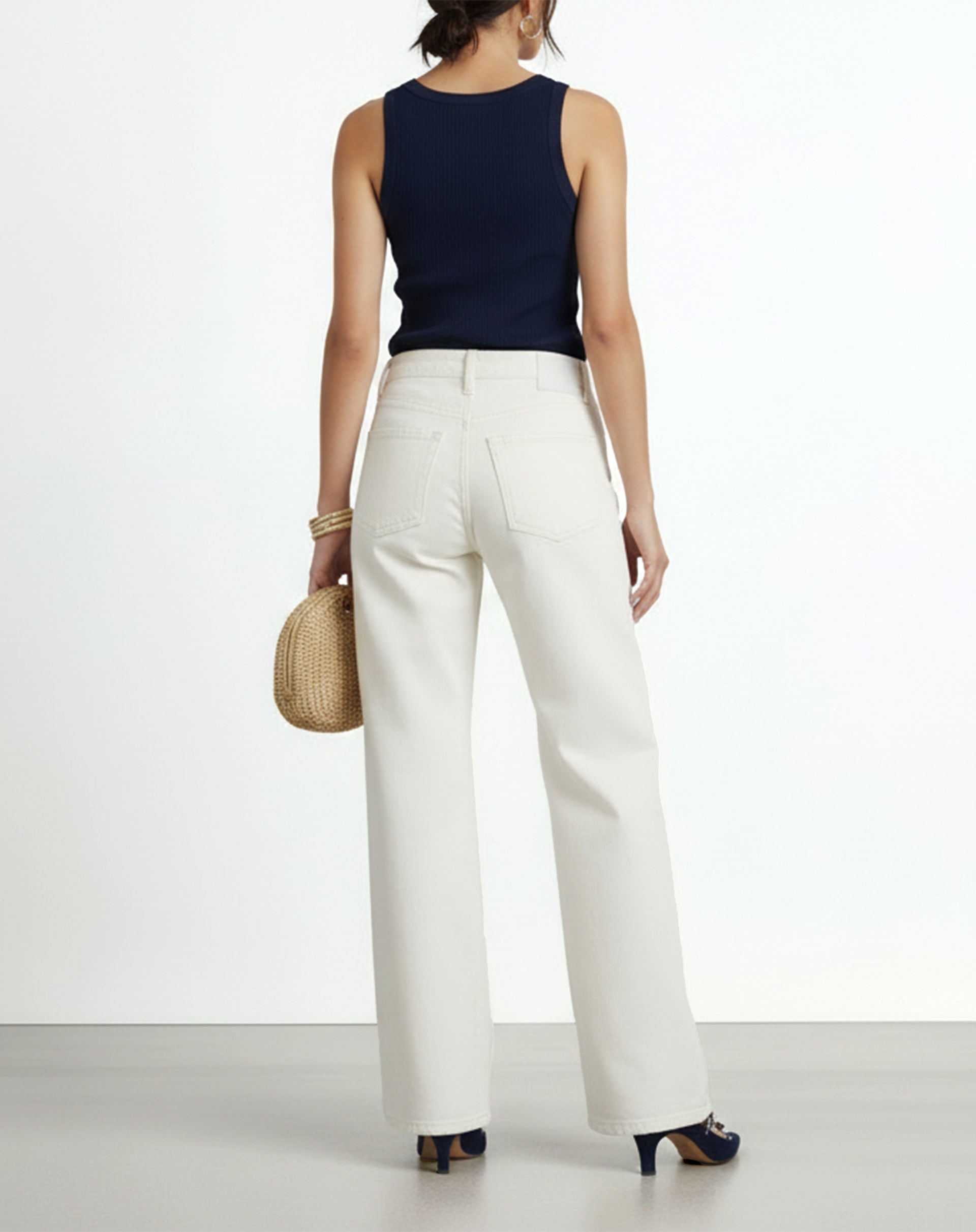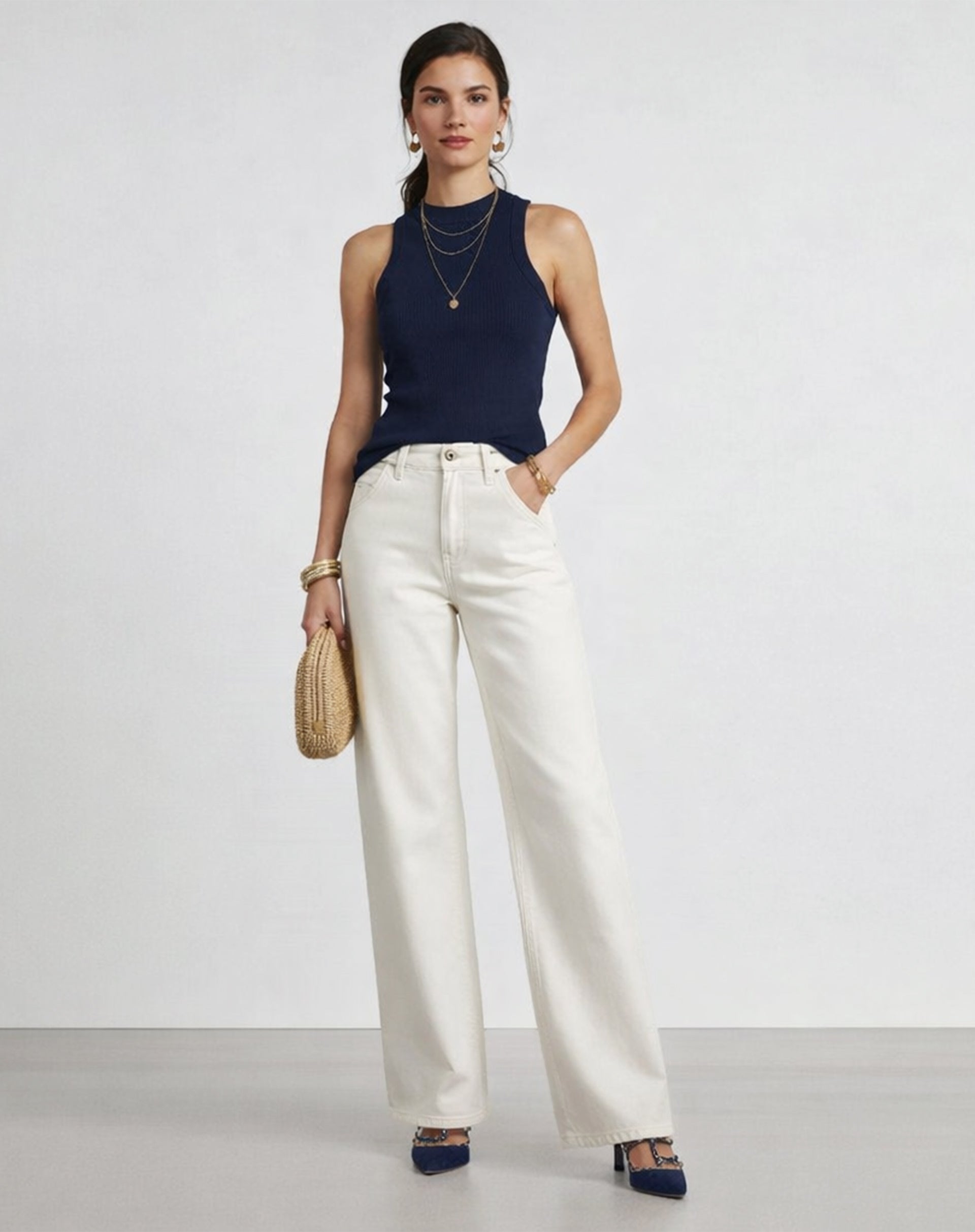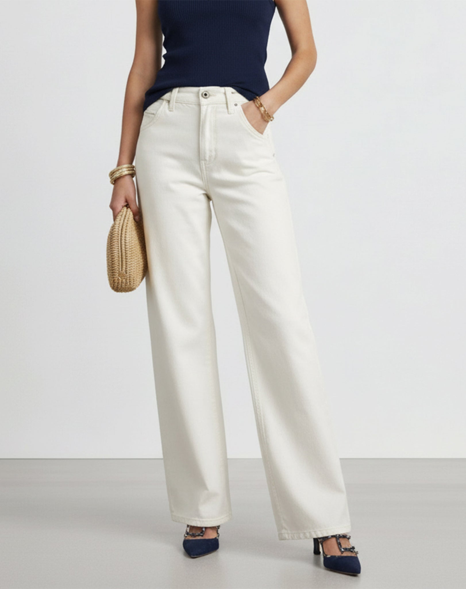Calça Wide Leg em sarja 100% algodão, um clássico que nunca sai das tendências. Versátil e atemporal, é ideal para composições modernas.