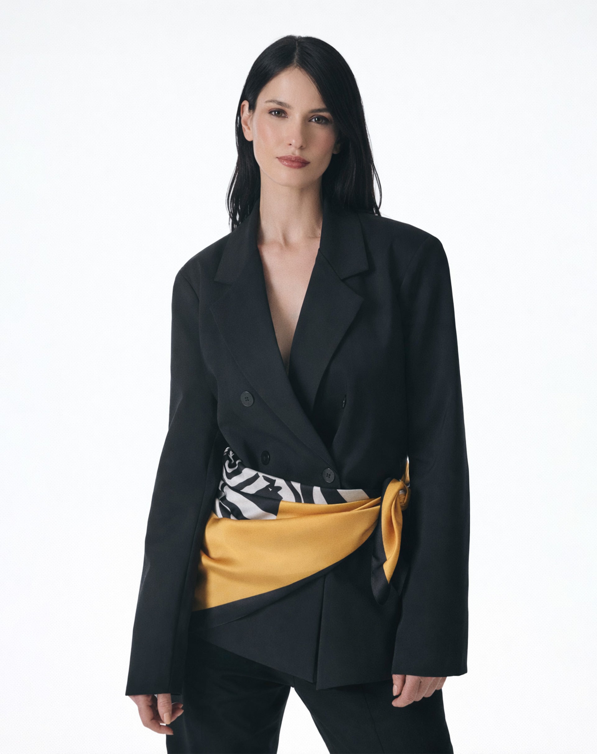 Destaque-se com elegância no trabalho com nosso blazer abotoamento duplo. O design clássico e sofisticado é perfeito para a meia-estação e dias frios, garantindo um look elevado e versátil.