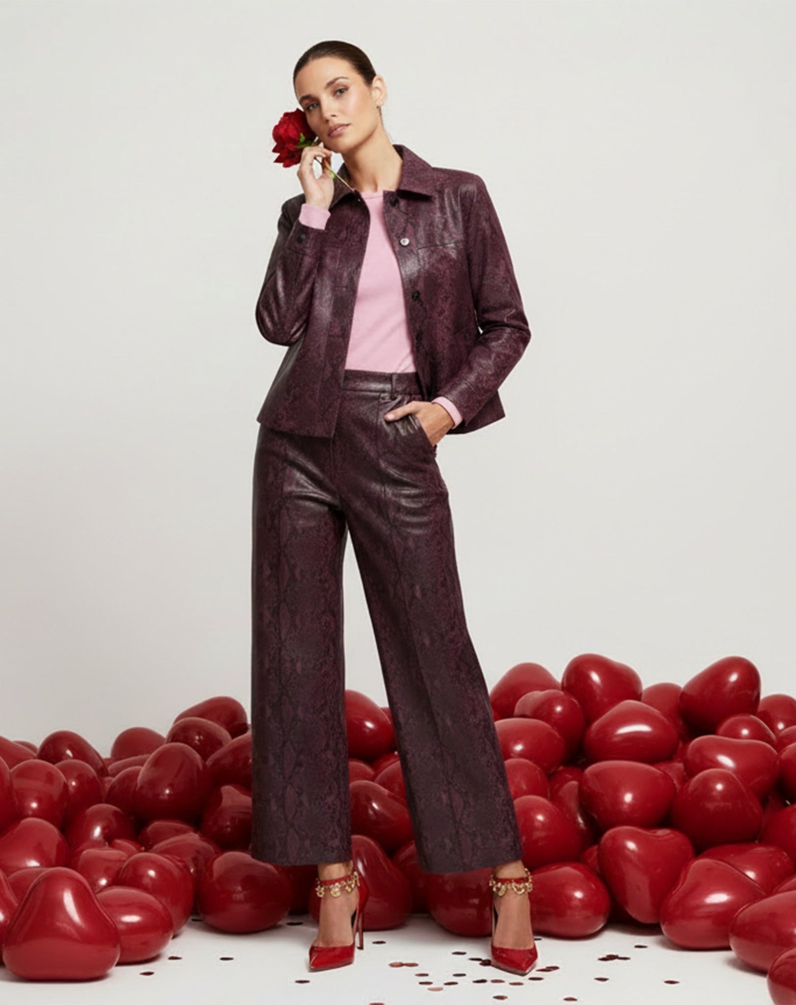 CALÇA RETA COBRA PU - VINHO