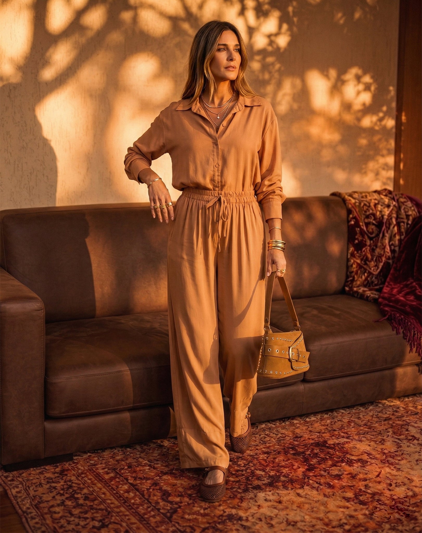 Camisa Fluida de Viscose - Ocre