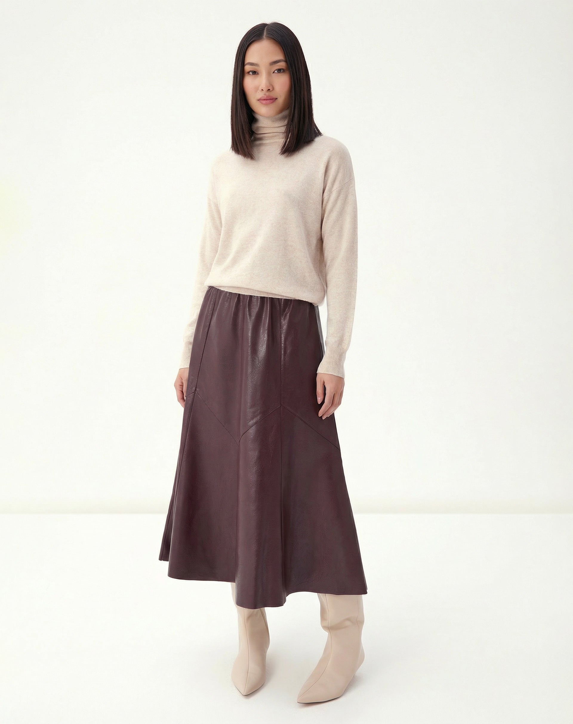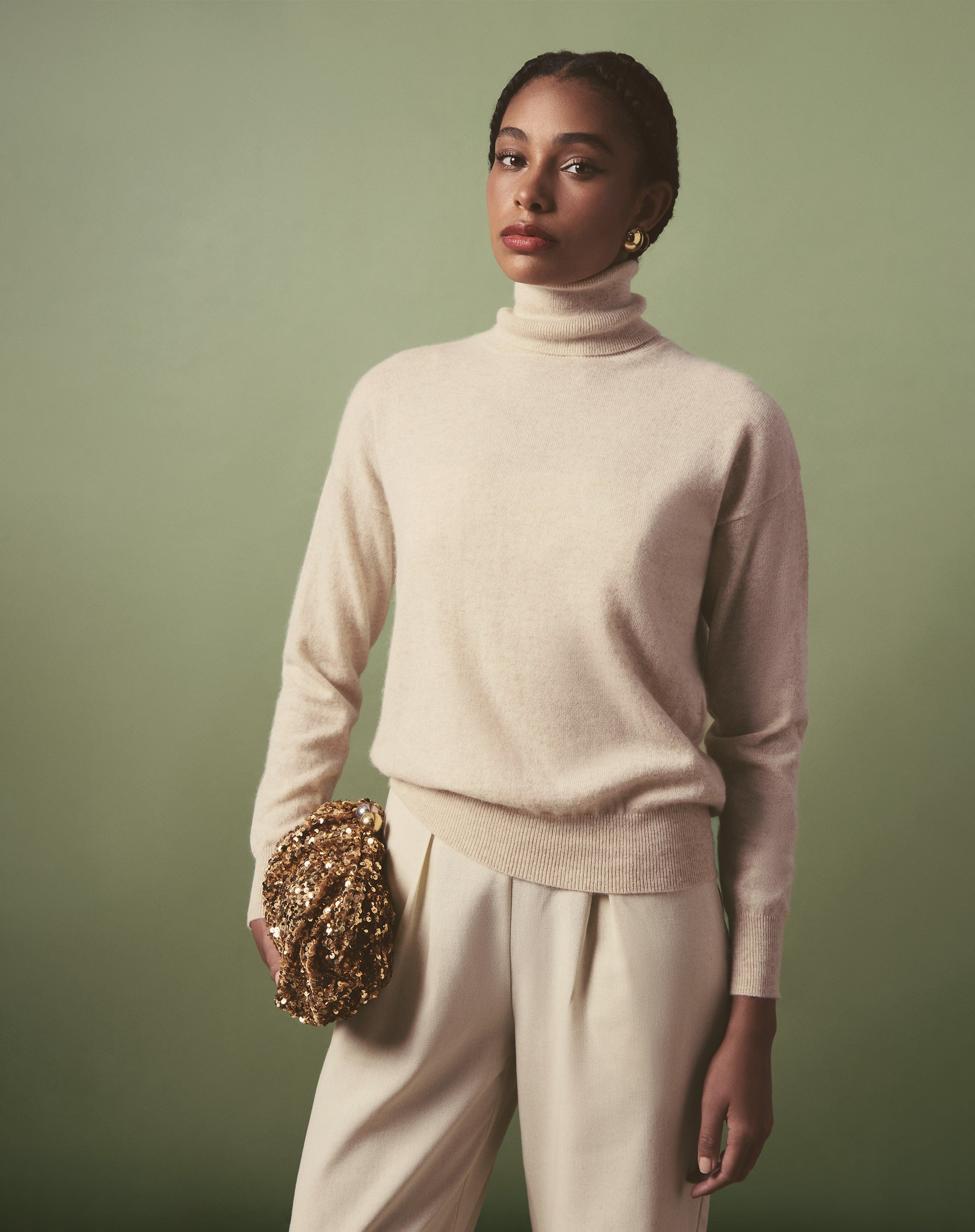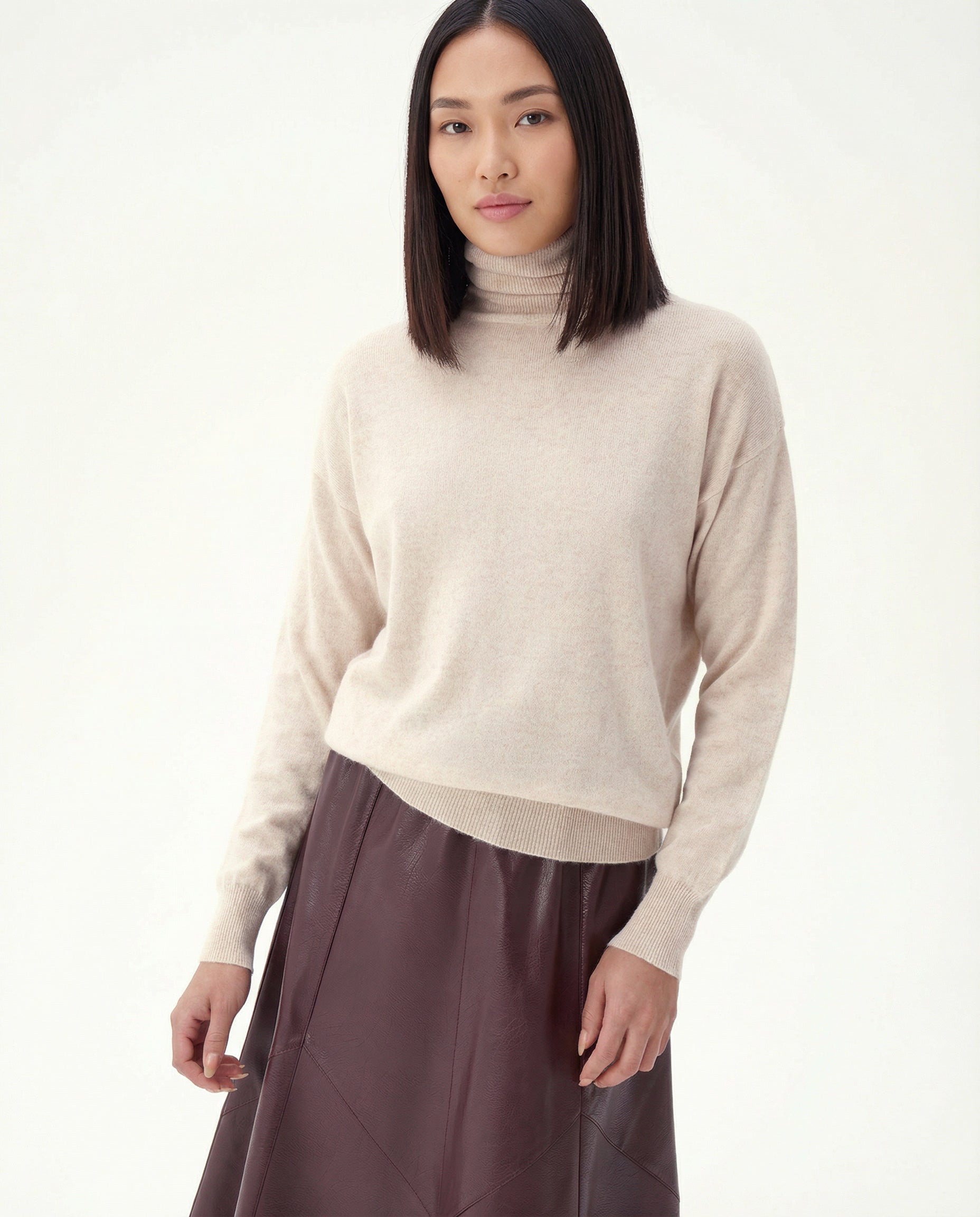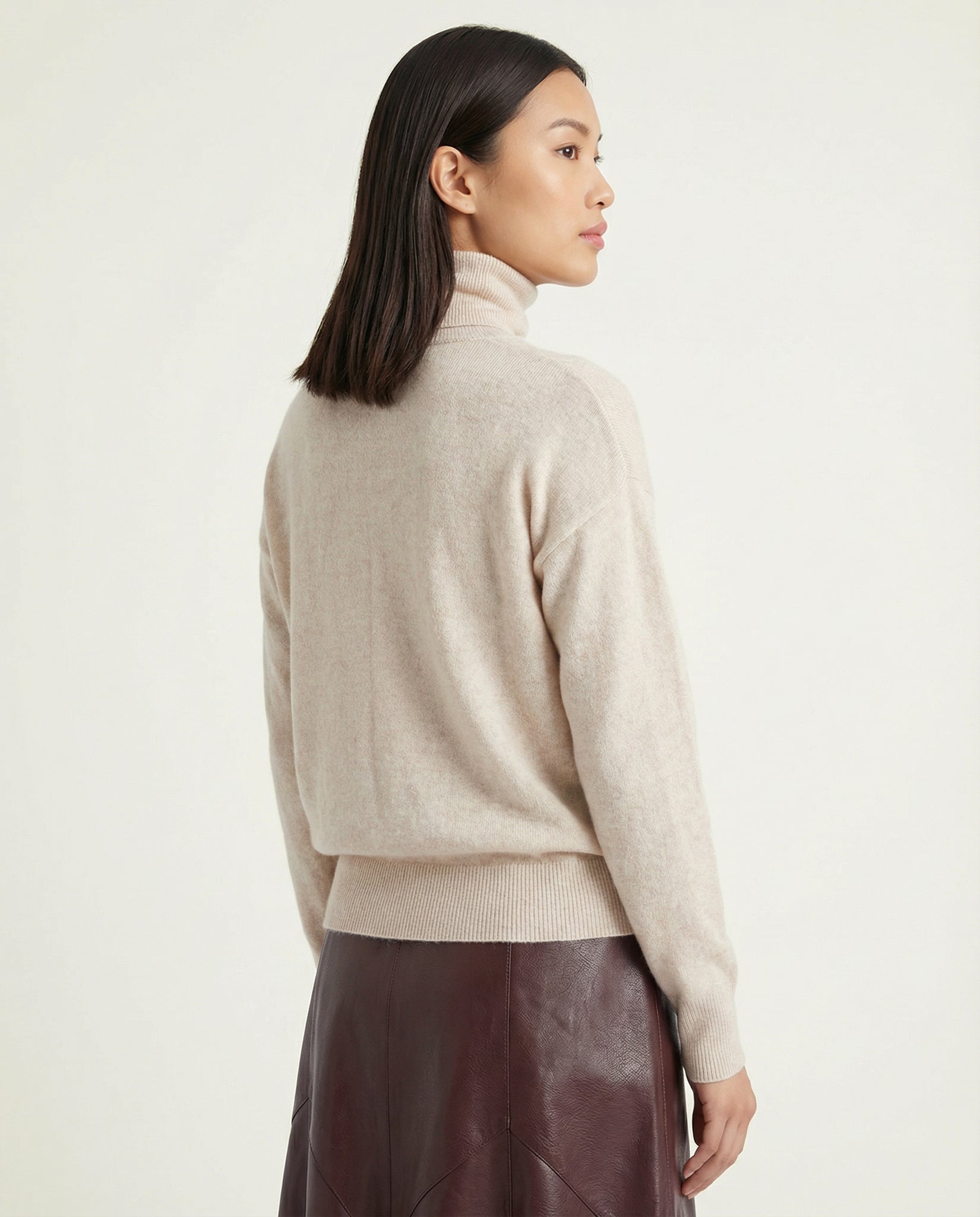Desfrute do conforto e luxo do Suéter Gola Alta de Cashmere, uma peça básica e atemporal em tricot de cashmere. Com comprimento midi e detalhes minimalistas, é perfeito para um look elevado e versátil em qualquer ocasião.