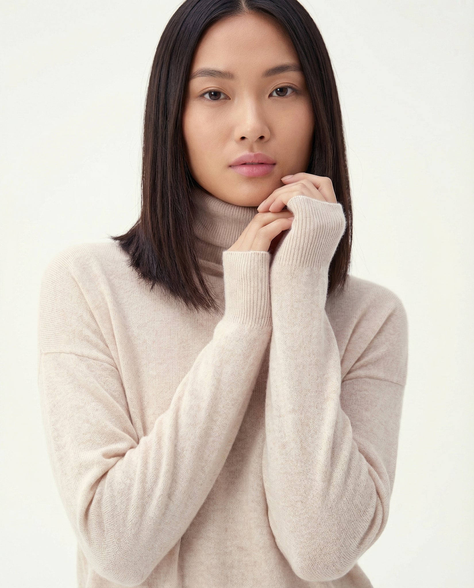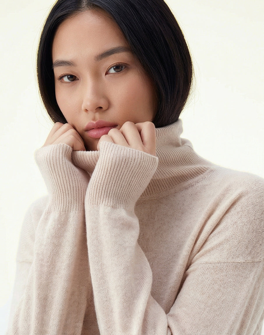 Suéter Cashmere Deluxe Gola Alta - BEGE