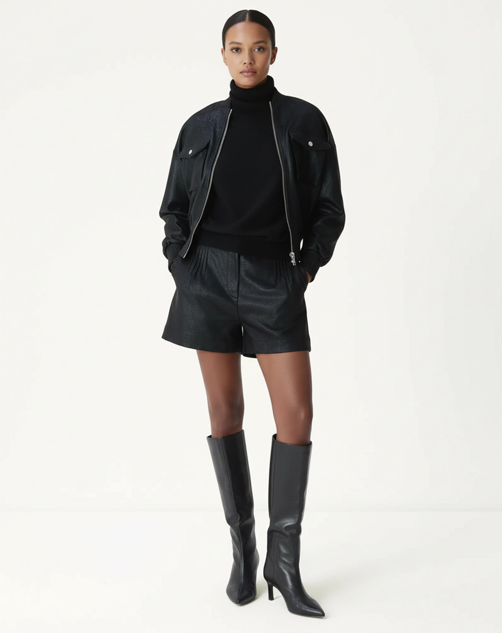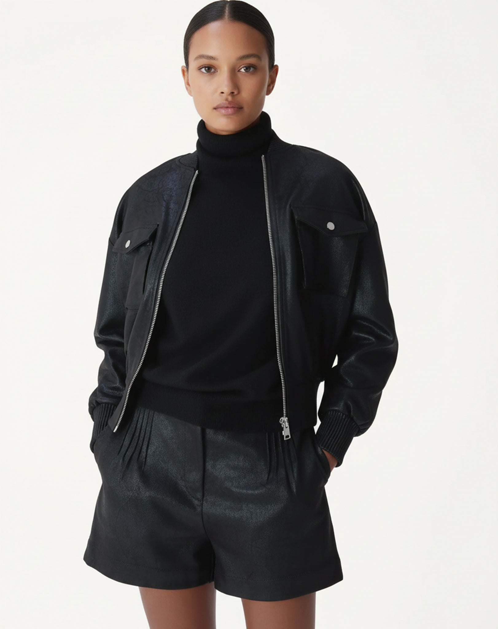 JAQUETA BOMBER METALIZADA - PRETO
