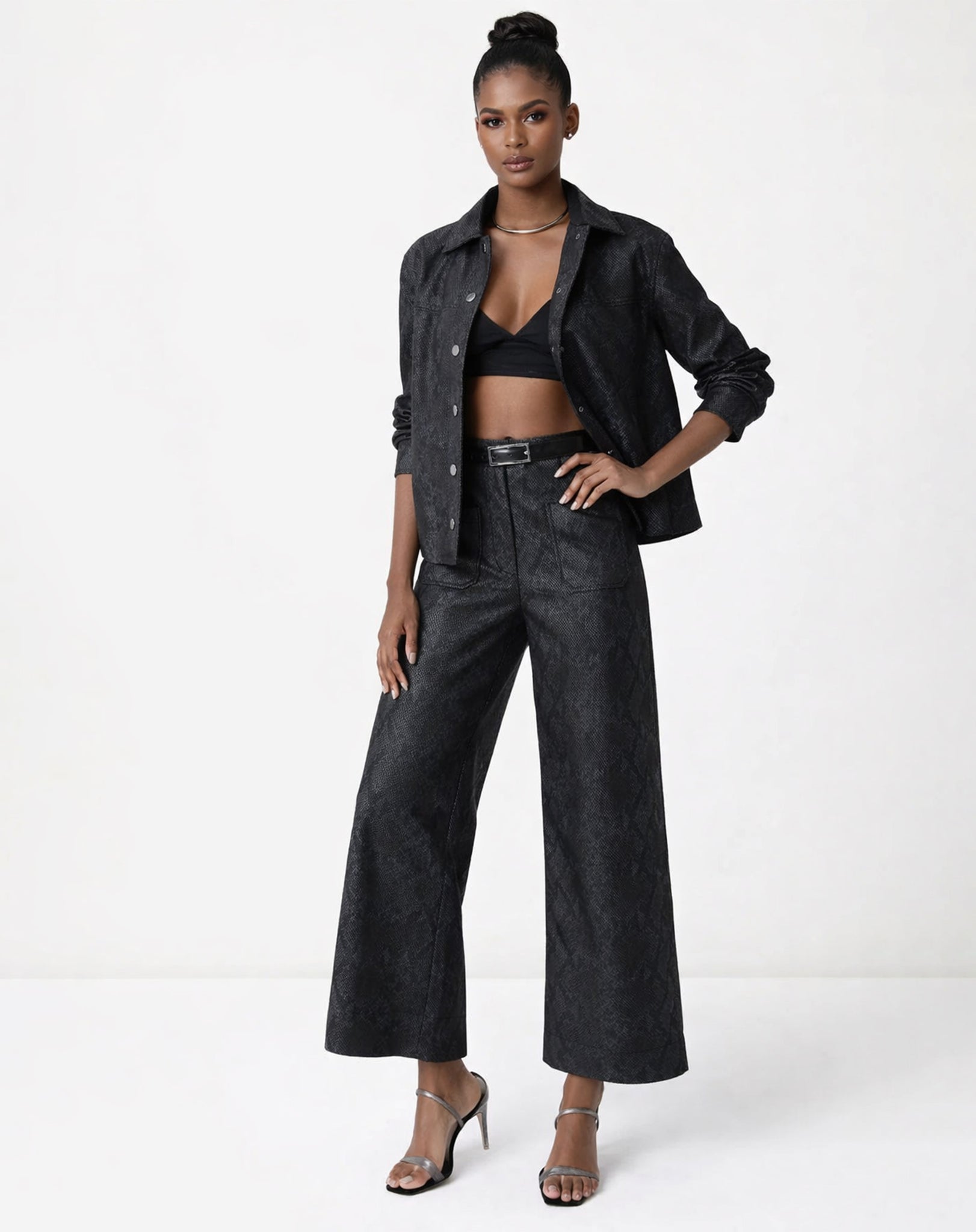 CALÇA RETA COBRA PU - PRETO