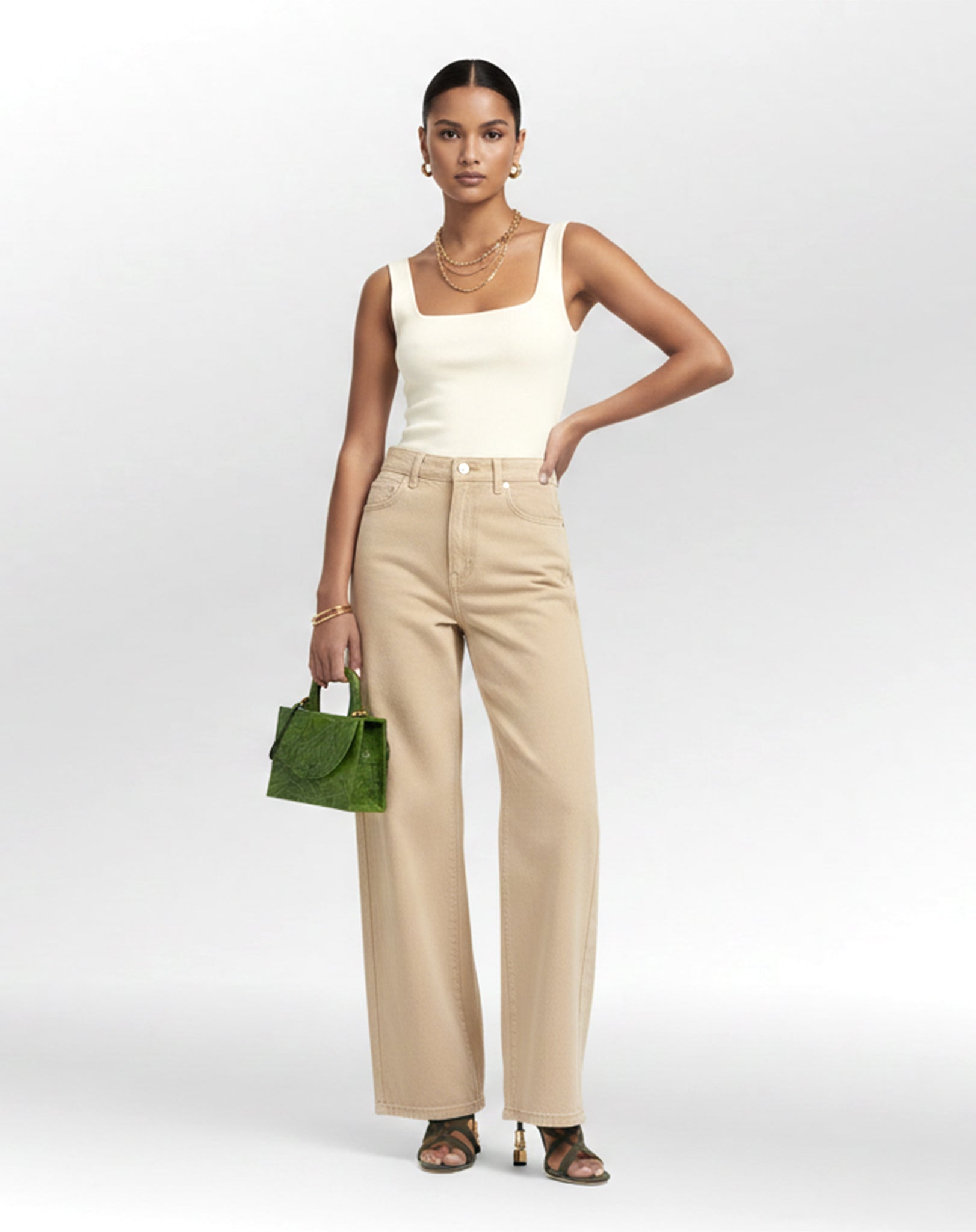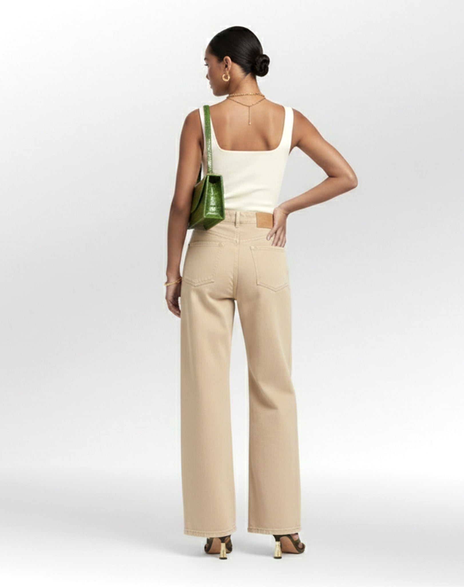 Calça Wide Leg em sarja 100% algodão, um clássico que nunca sai das tendências. Versátil e atemporal, é ideal para composições modernas.