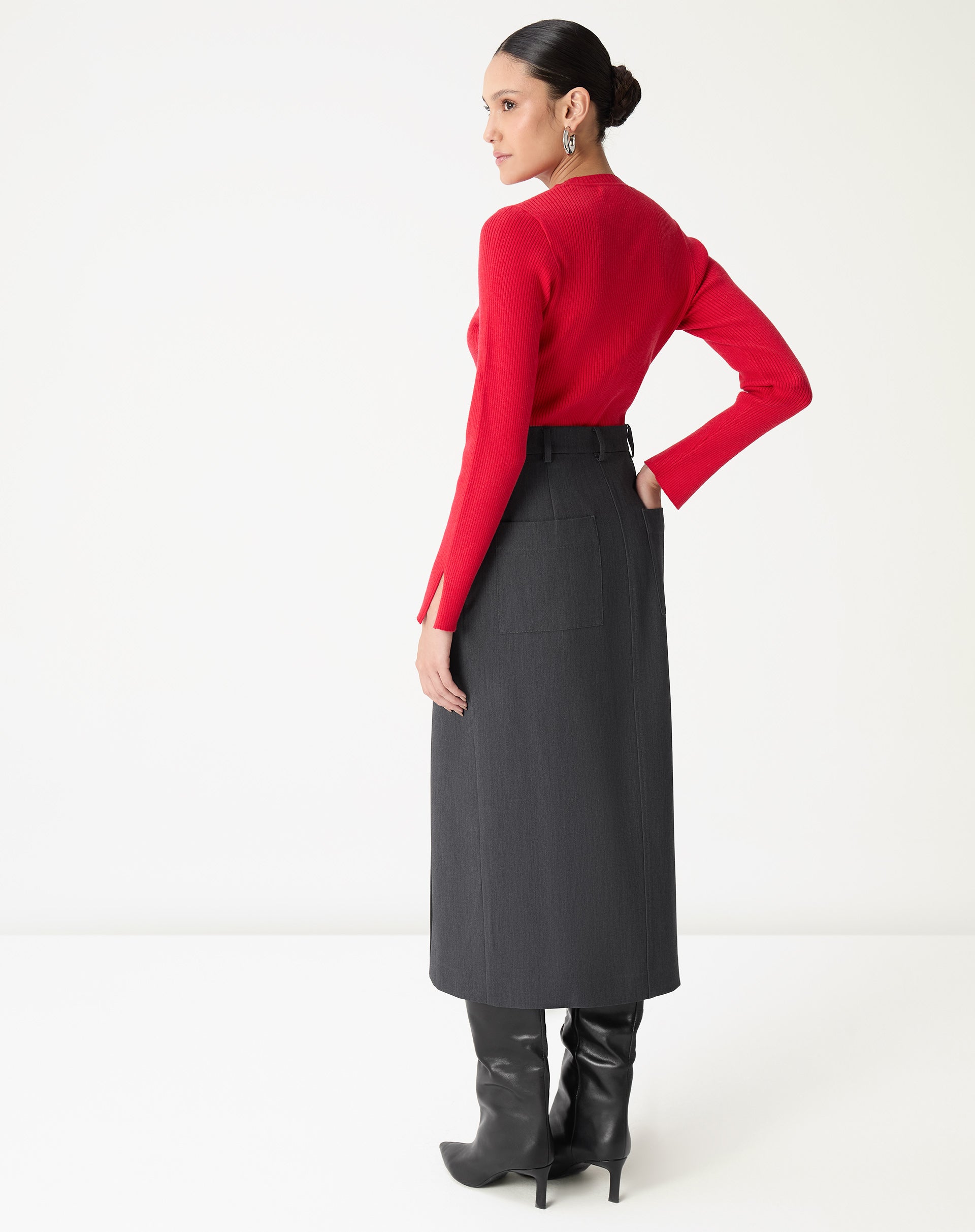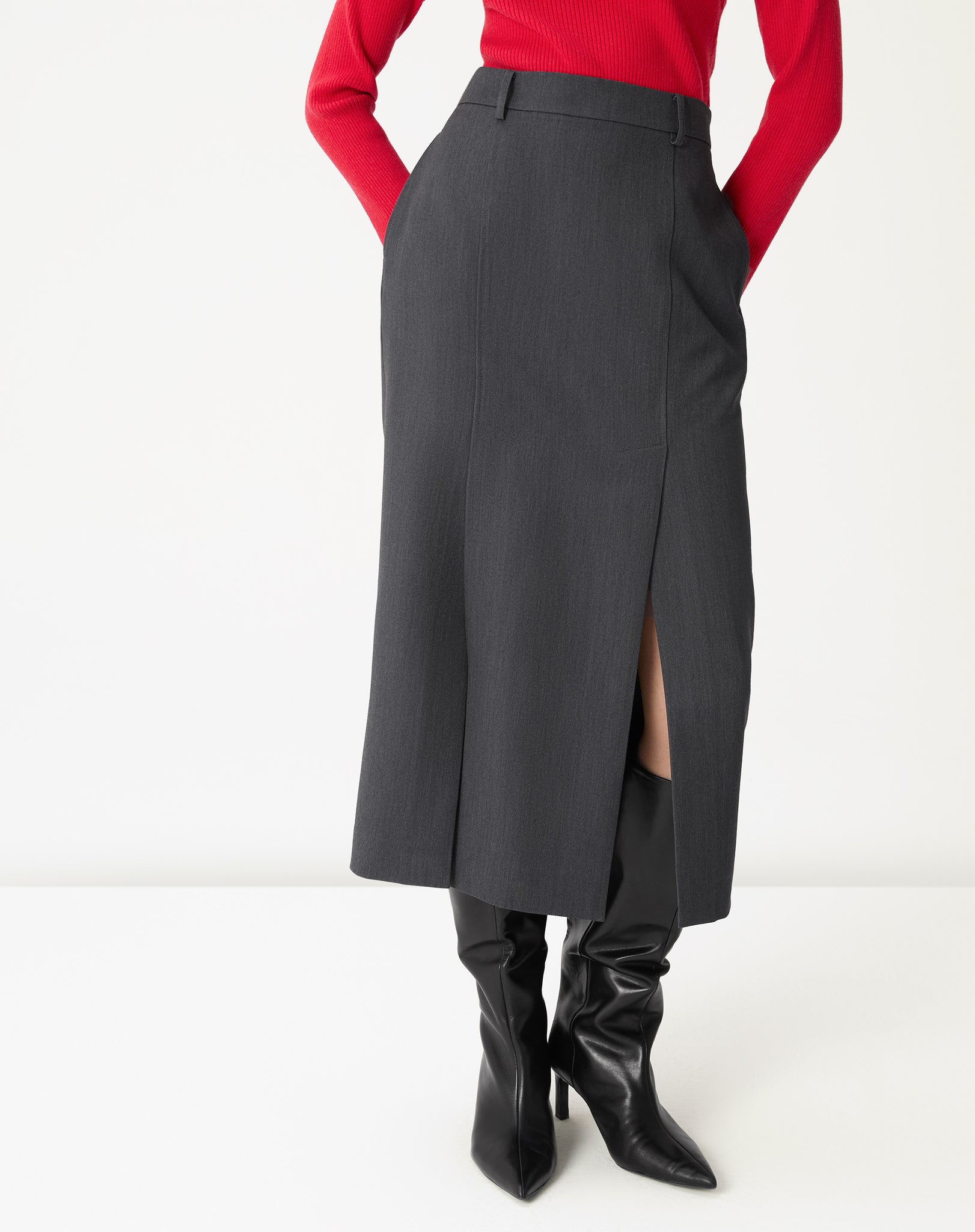 SAIA MIDI COM FENDAS ALFAIATARIA - CINZA