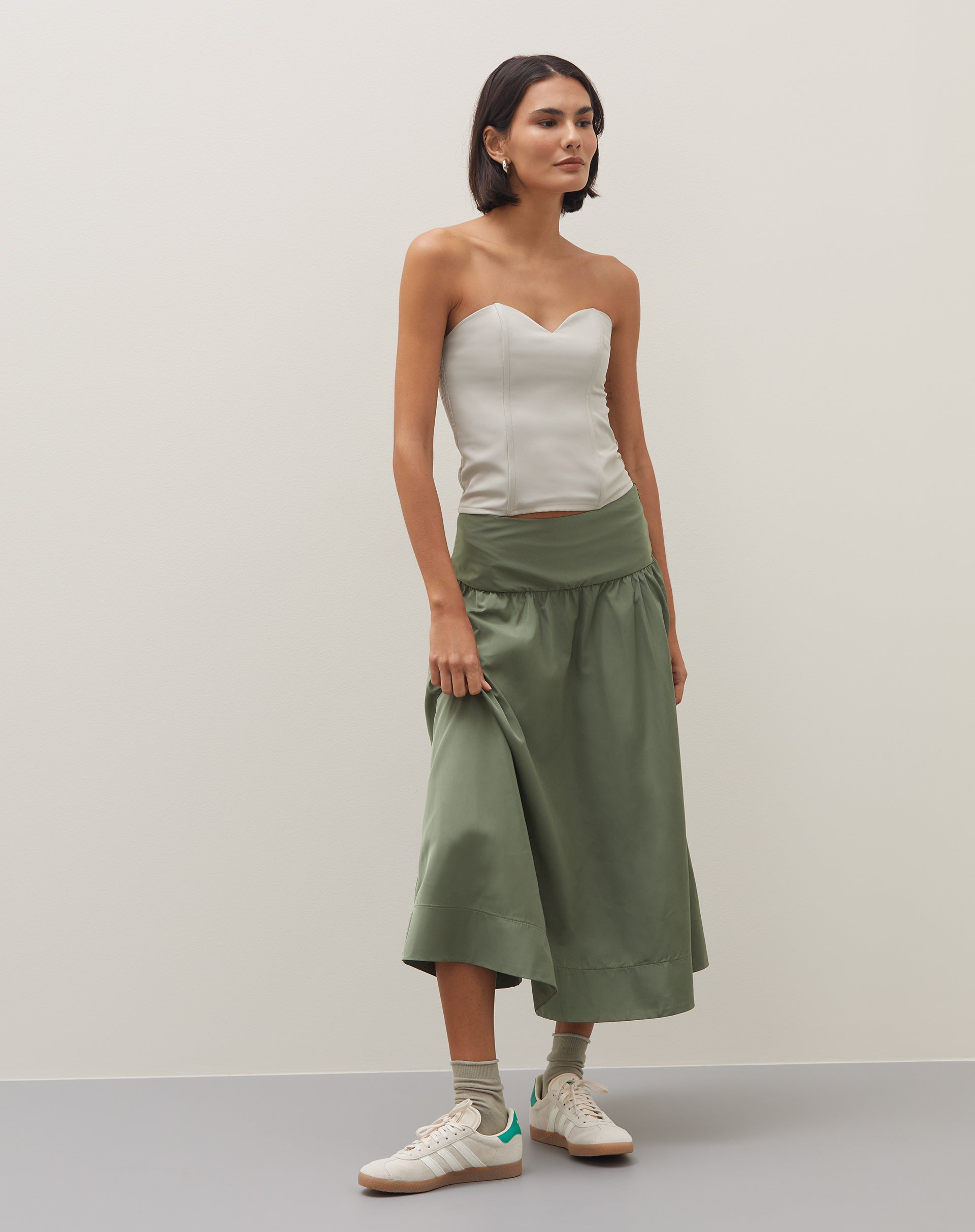 Saia Midi com Pala Alfaiataria - Verde Militar