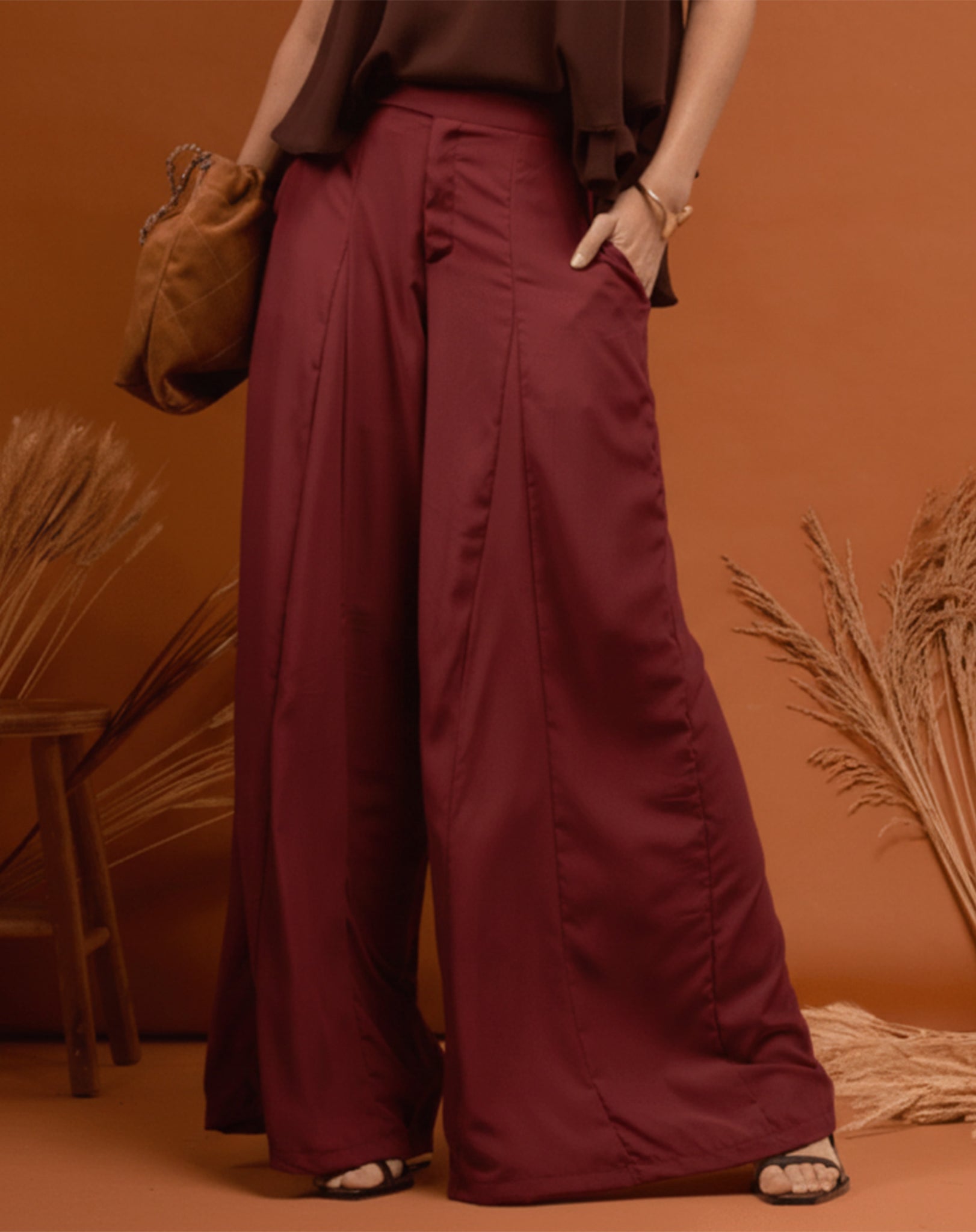 Calça Pantalona de Alfaiataria - Vinho