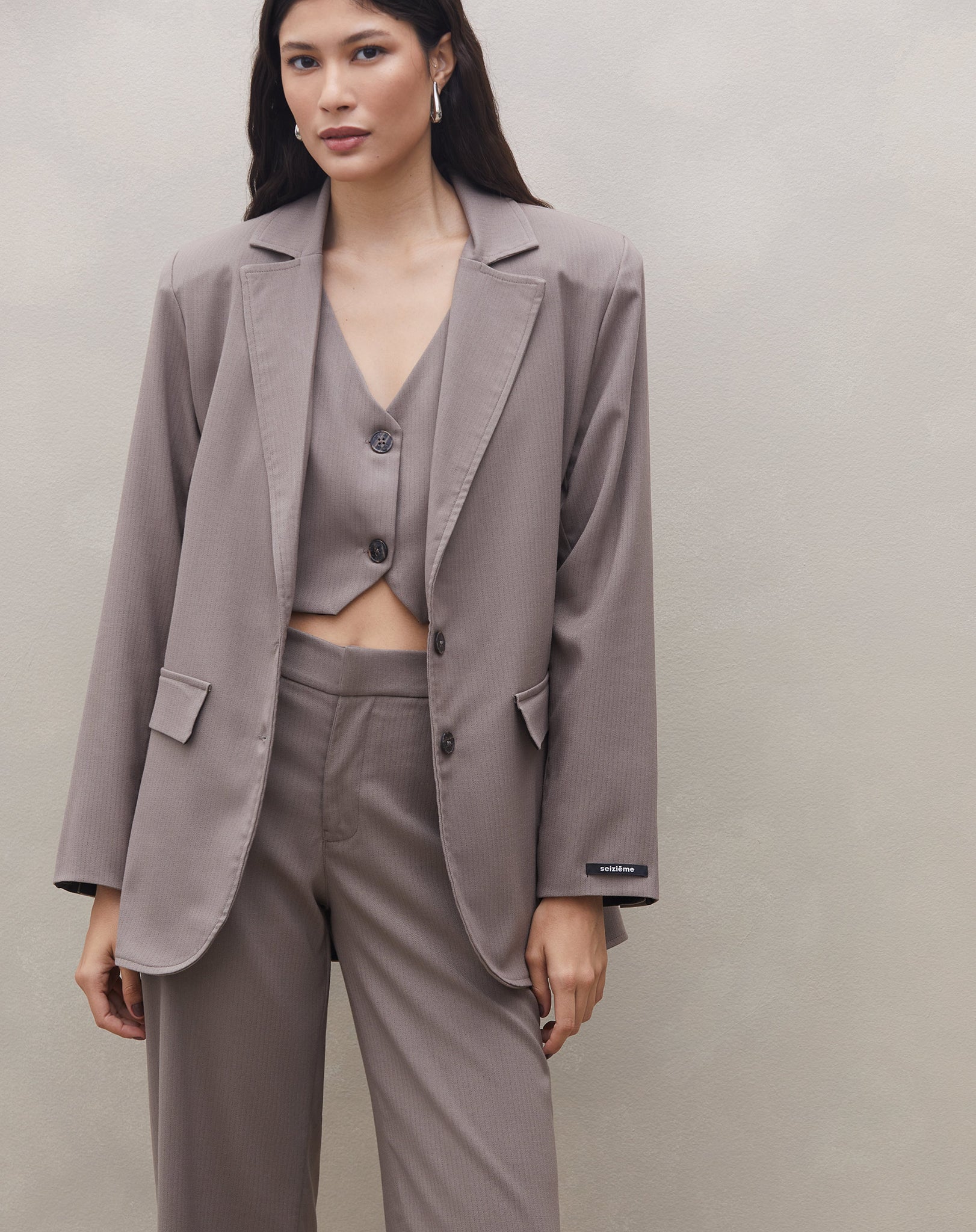 Chiques e atemporais, os tons terrosos fizeram muito sucesso nas passarelas no último fashion week Europeu. E mais do que clássica, nossa alfaiataria risca de giz também se encaixa perfeitamente na estética cool & chic da mulher moderna. Esqueça a ideia de usar ela apenas nos office looks, aposte também no dia a dia e no estilo streetwear! O blazer "Cognac XO" é produzido em um tecido diferenciado, uma alfaiataria importada que contém um leve brilho metalizado dourado na sua trama. Com shape oversized, seu fechamento é frontal por botões personalizados e exclusivos da marca. Peça inteiramente forrada em um luxuoso cetim preto.Medidas:- PP veste tamanho 34/36- P veste tamanho 36/38- M veste tamanho 38/40- G veste tamanho 42 A modelo na foto veste tamanho PP.Medidas da modelo: busto 80cm | cintura 60cm | quadril 88cm | altura 1,65m | manequim 34Composição do tecido: 66% poliéster 32% viscose 2% elastanoComposição do forro: 96% poliéster 4% elastano