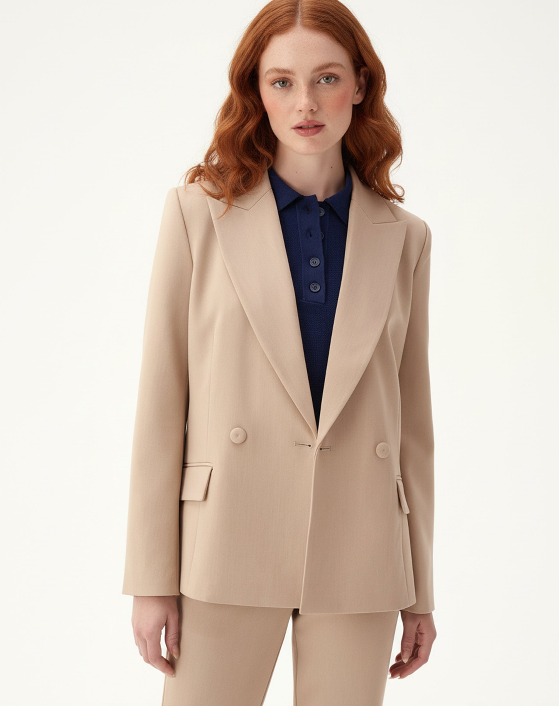 BLAZER SLIM ABOTOAMENTO DUPLO ALFAIATARIA - BEGE