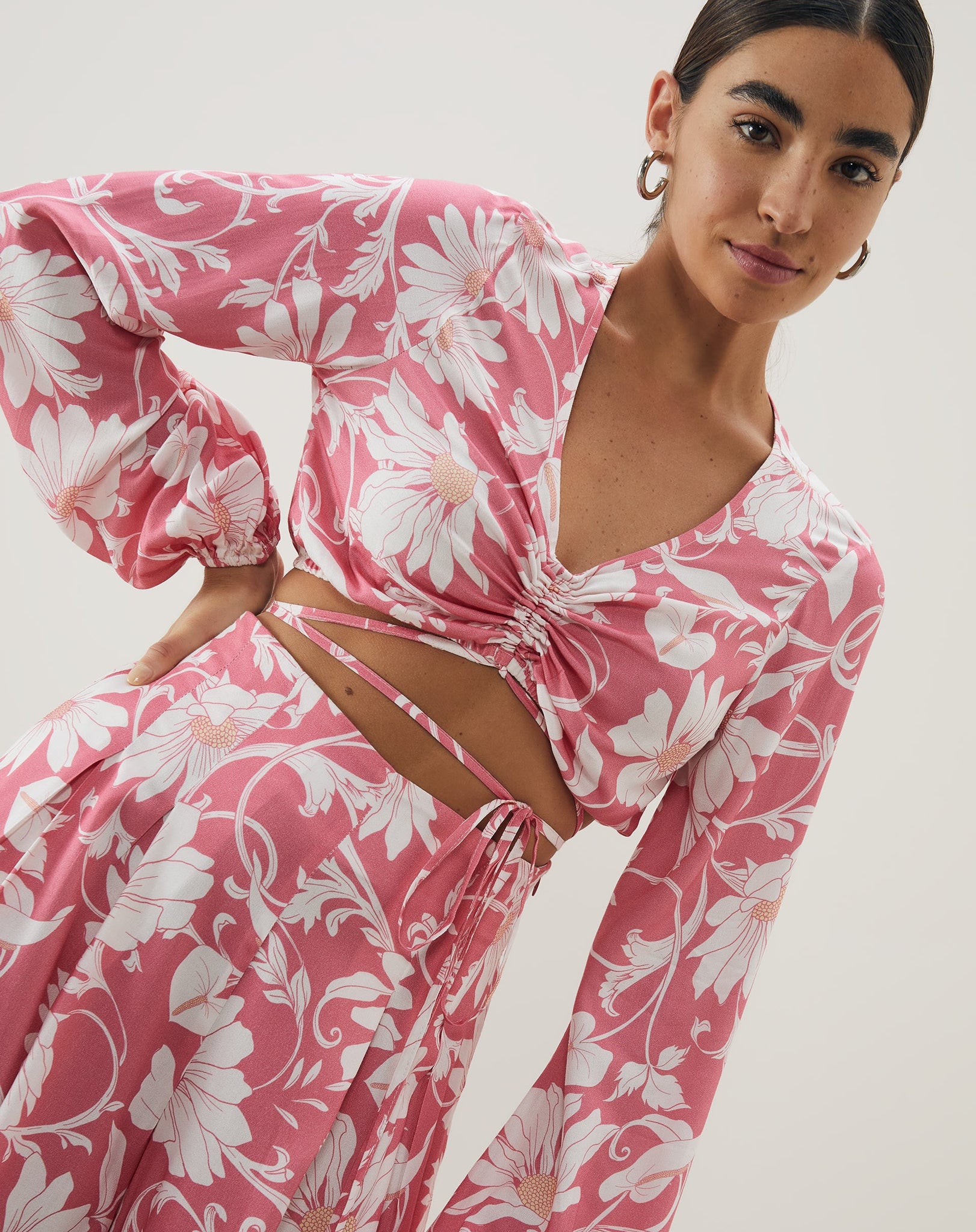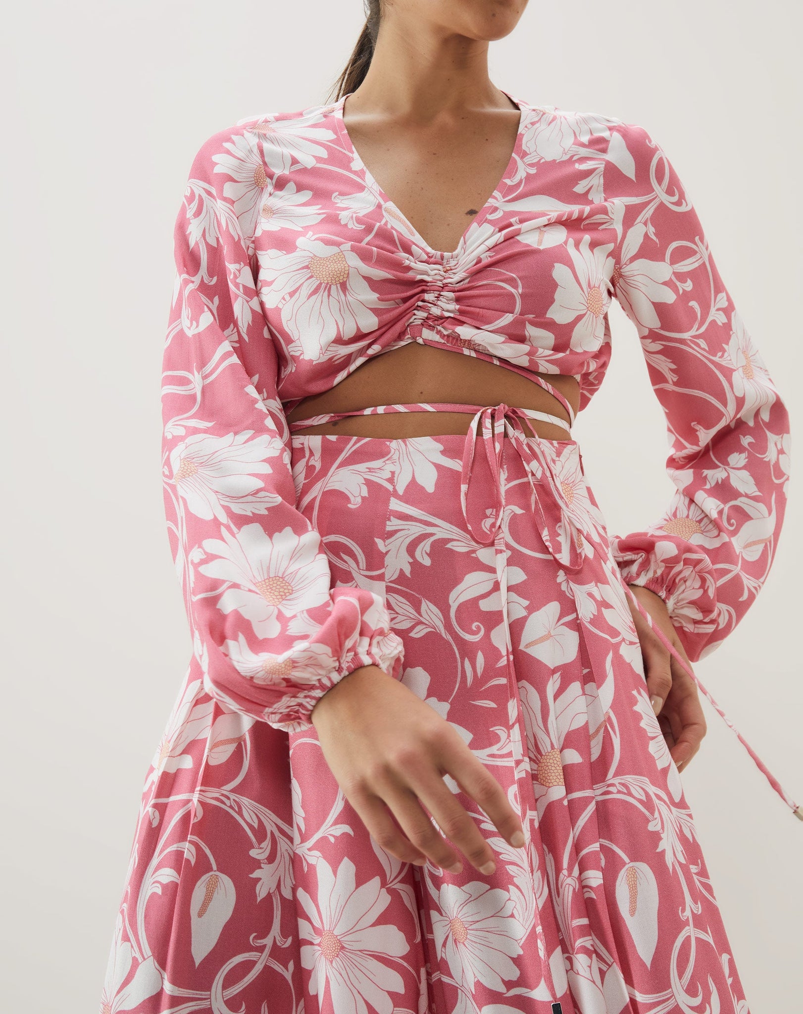 BLUSA CROPPED AMARRAÇÃO CINTURA é aquela peça "vestiu, tô pronta". Para você usar nos dias de calor. A peça tem silhueta acinturada, comprimento cropped, gola v e costas fechadas.