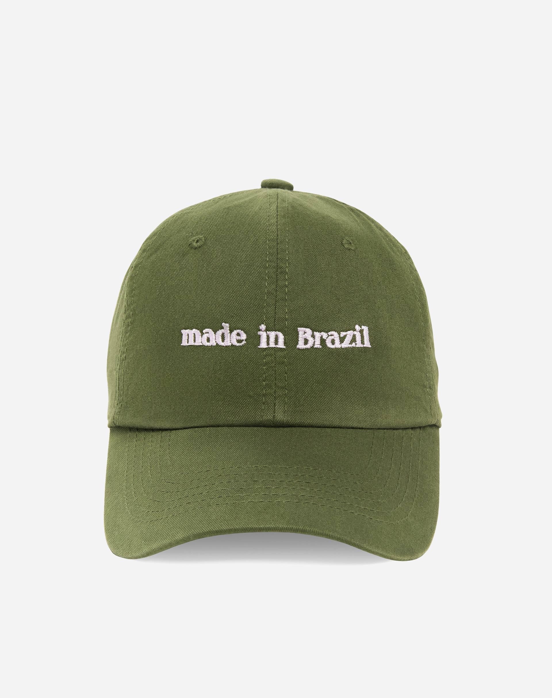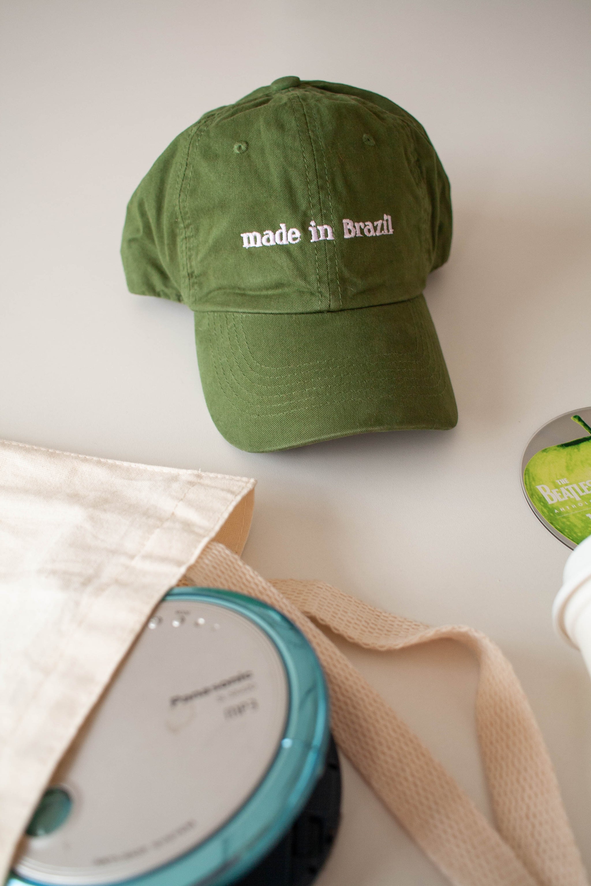 Para você que é orgulhosamente brasileira, assim como nós. Nosso boné modelo #DatHat no mood vintage com bordado "Made in Brazil" já está mais do que pronto para Copa do Mundo. - Cor verde - Bordado lilás - Composição 100% algodão - Material Sarja - Tamanho único - Regulagem com fivela - Unissex