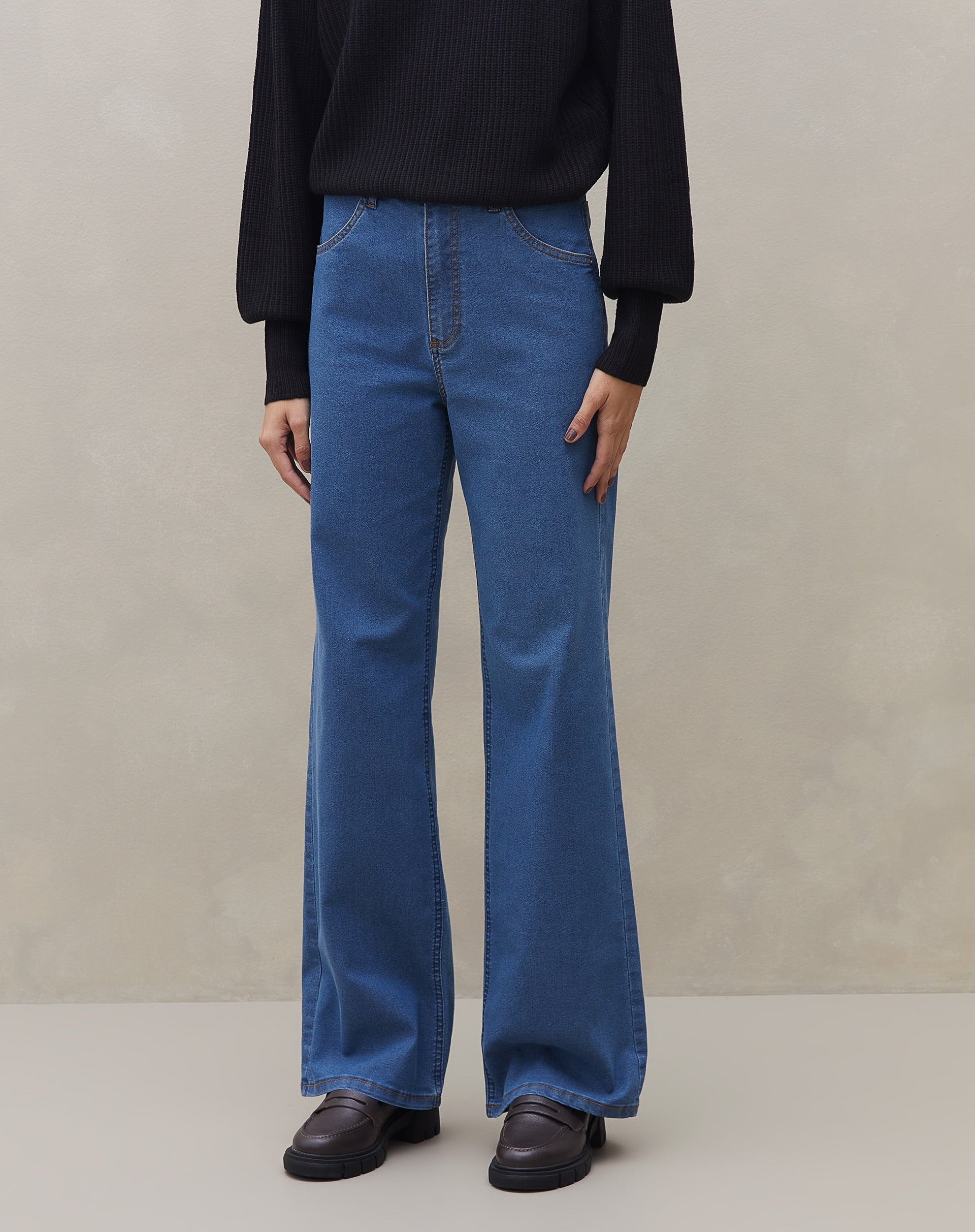 Calça Jeans Bootcut: A peça curinga que te acompanha em todas as estações. Com cintura alta e barra padrão, essa calça é perfeita para um look casual e urbano.