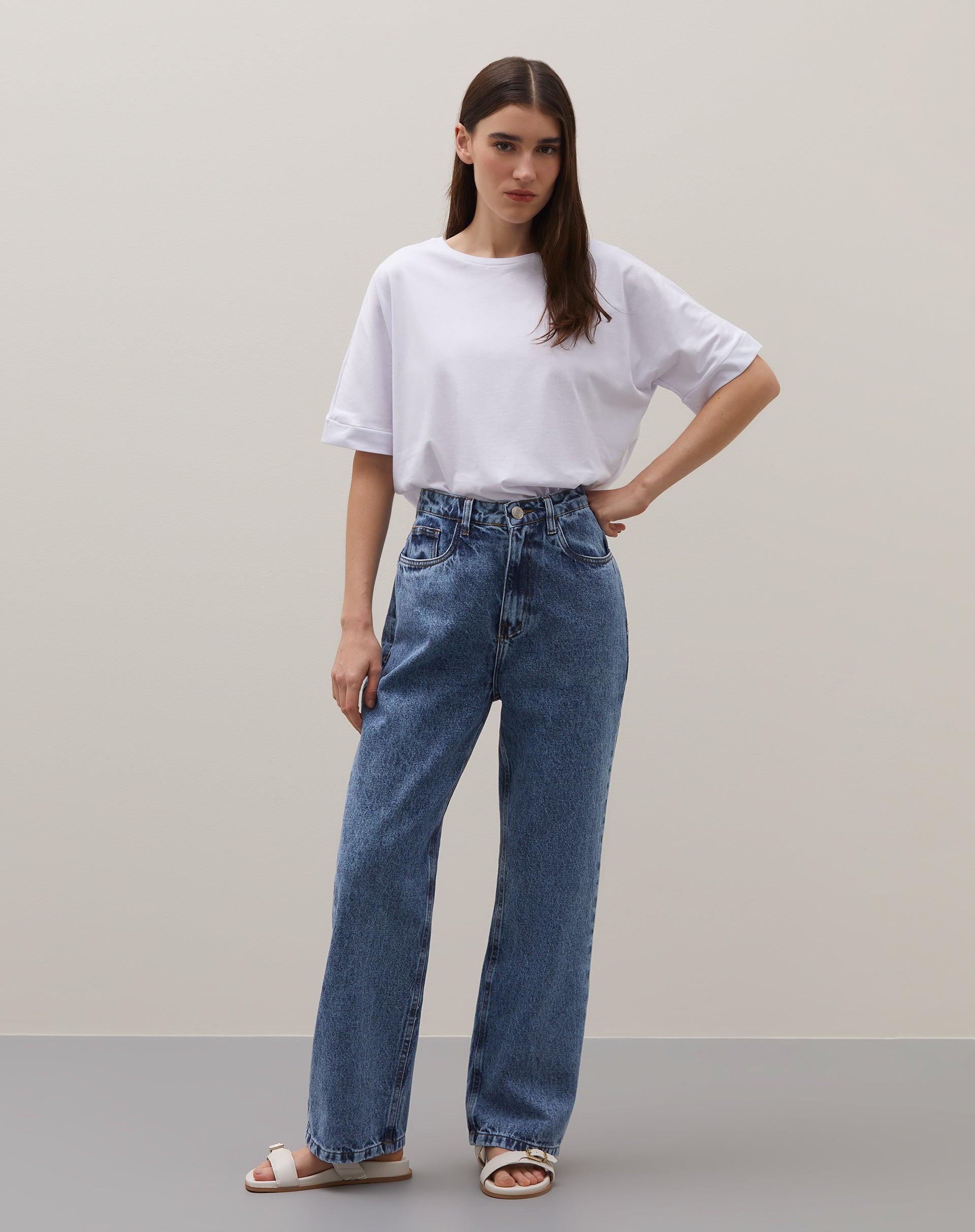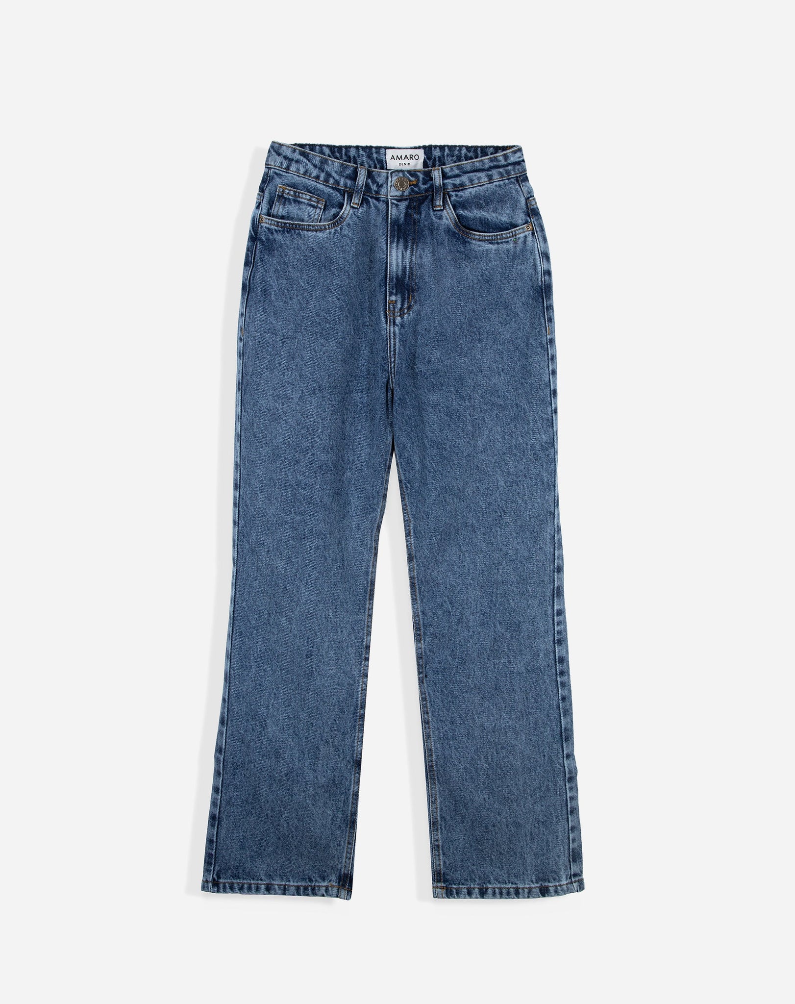 Calça reta jeans Essential, peça versátil para diversas ocasiões. Design clássico e atemporal, ideal para um look casual elegante.