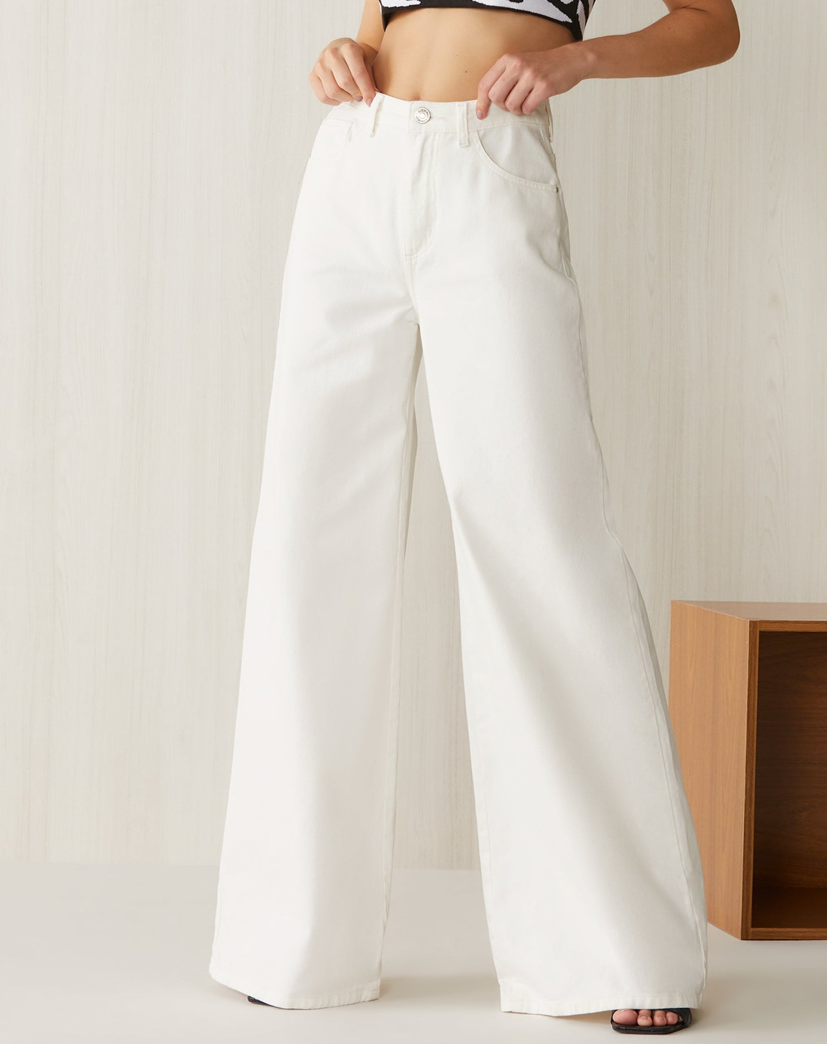 Calça Sarja Wide Básica - Off-white