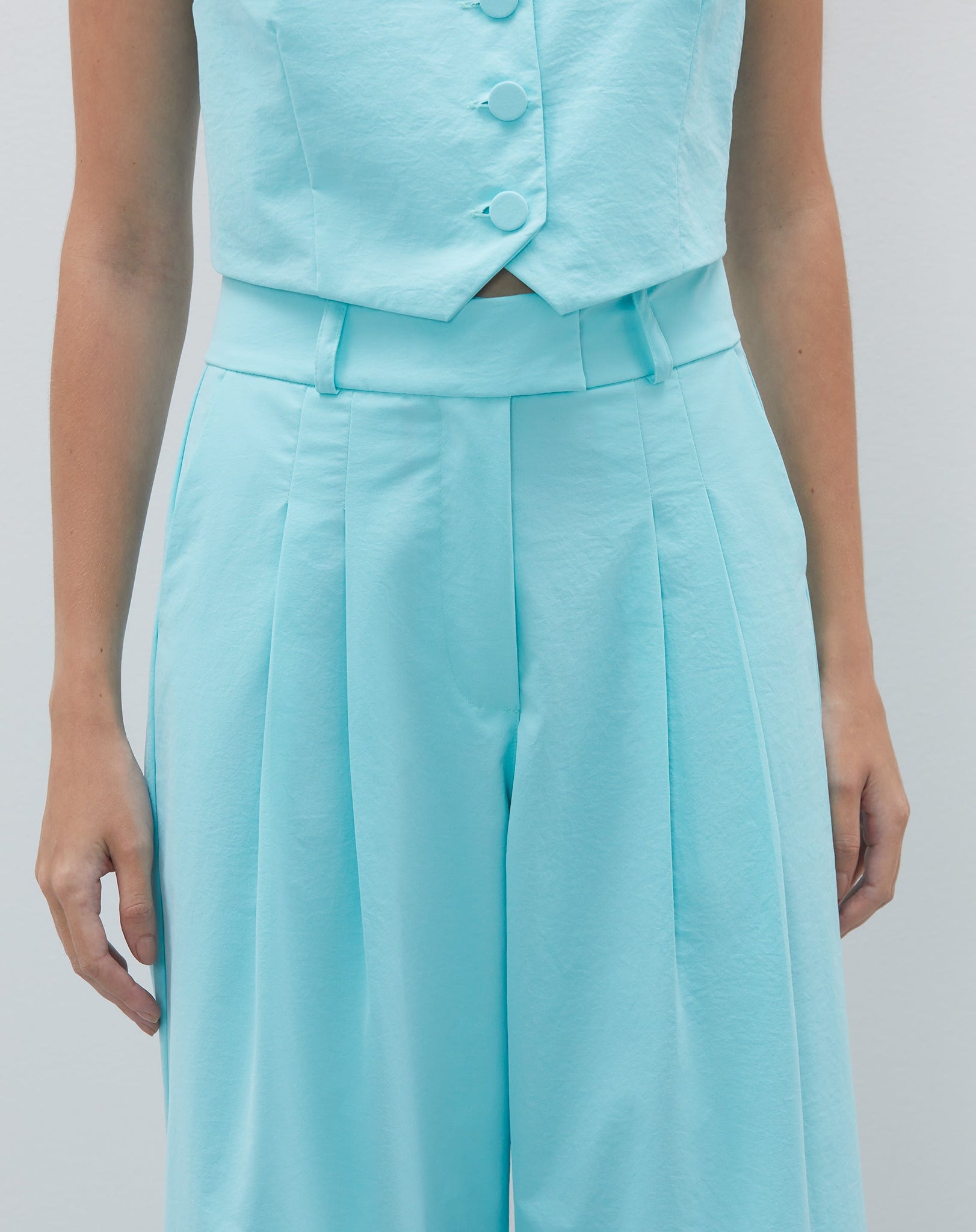 CALÇA WIDE COM PREGAS ALFAIATARIA - VERDE ÁGUA