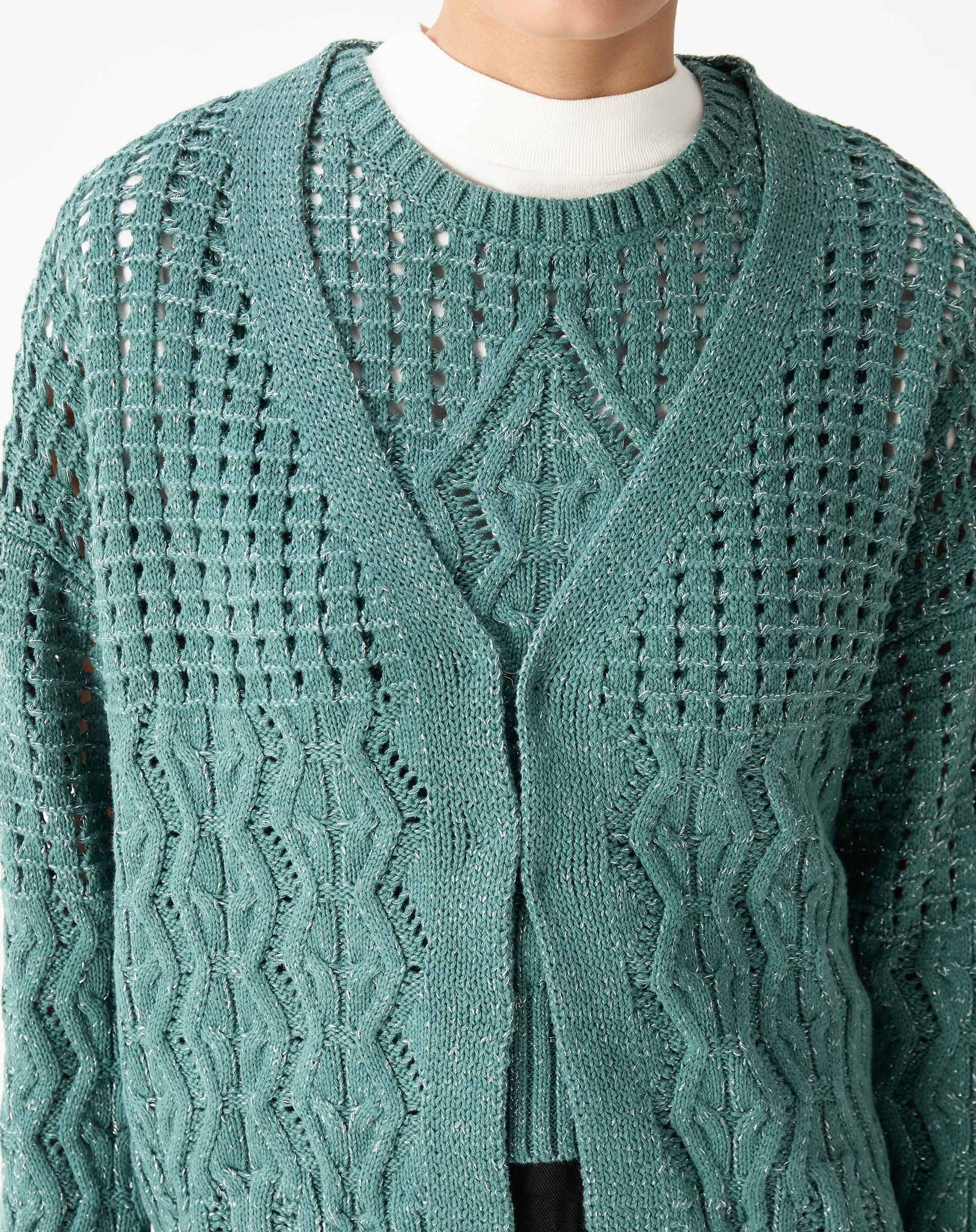 CARDIGAN TRICOT PONTO DIFERENCIADO - VERDE