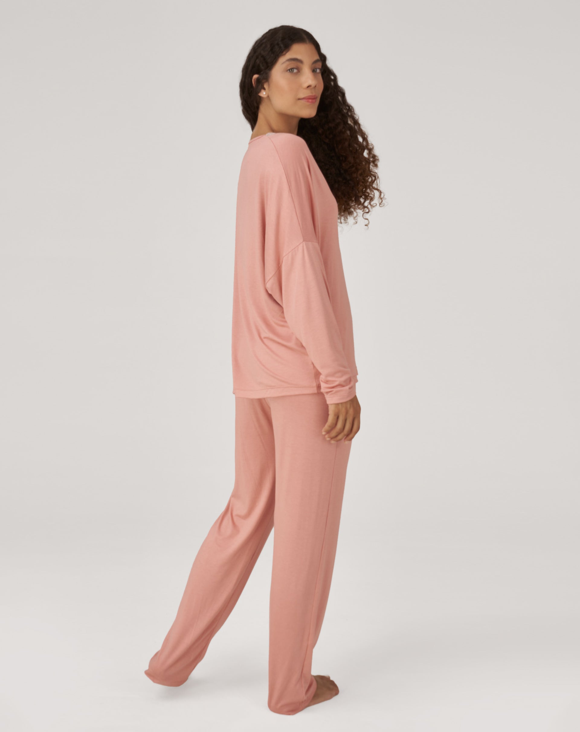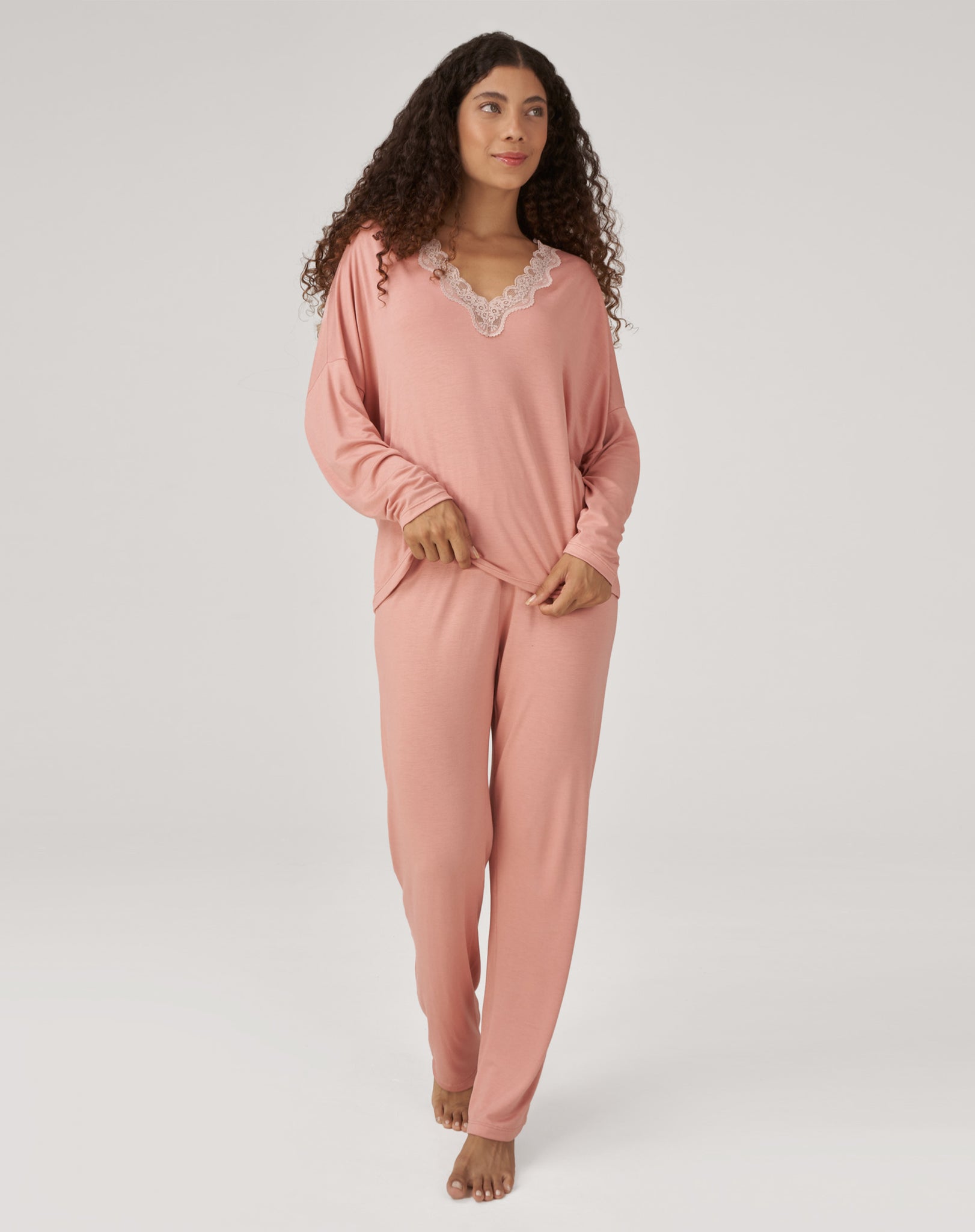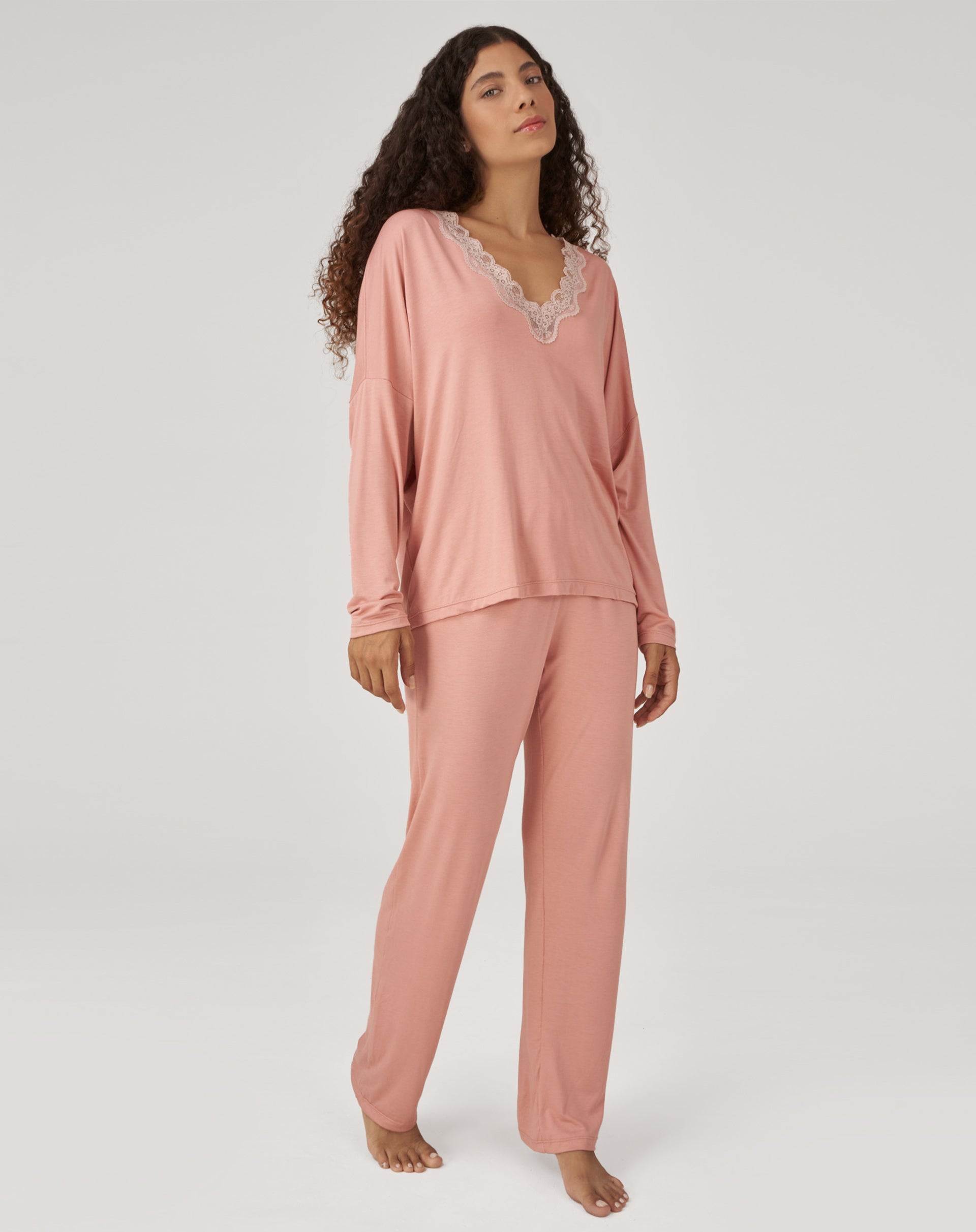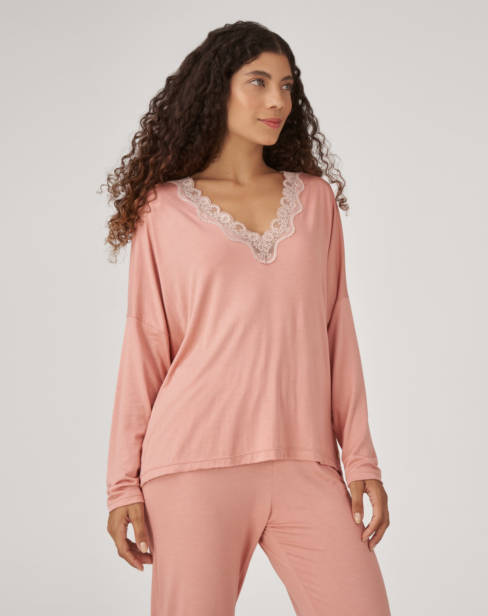 Conjunto de Pijama Longo com Renda - Rosa
