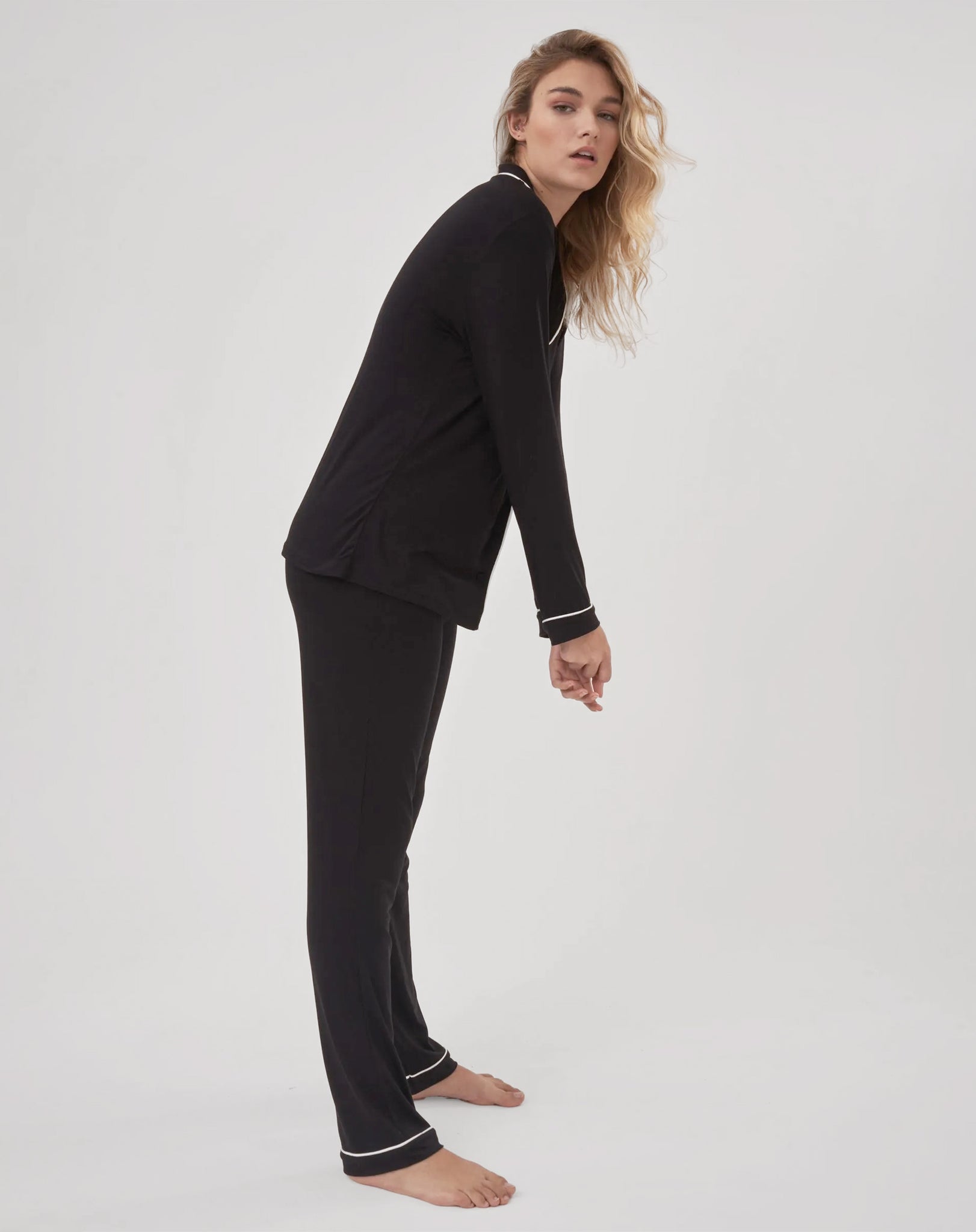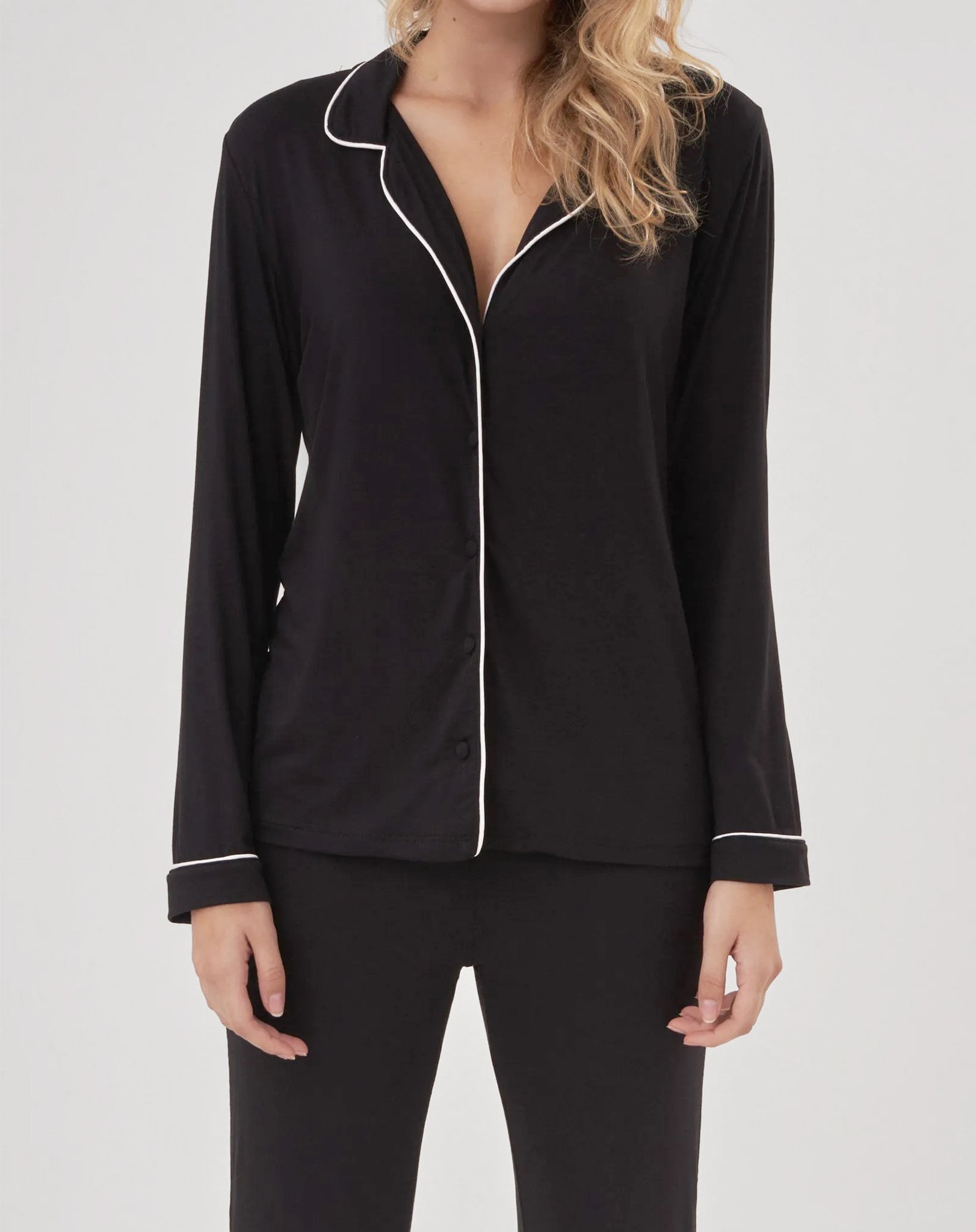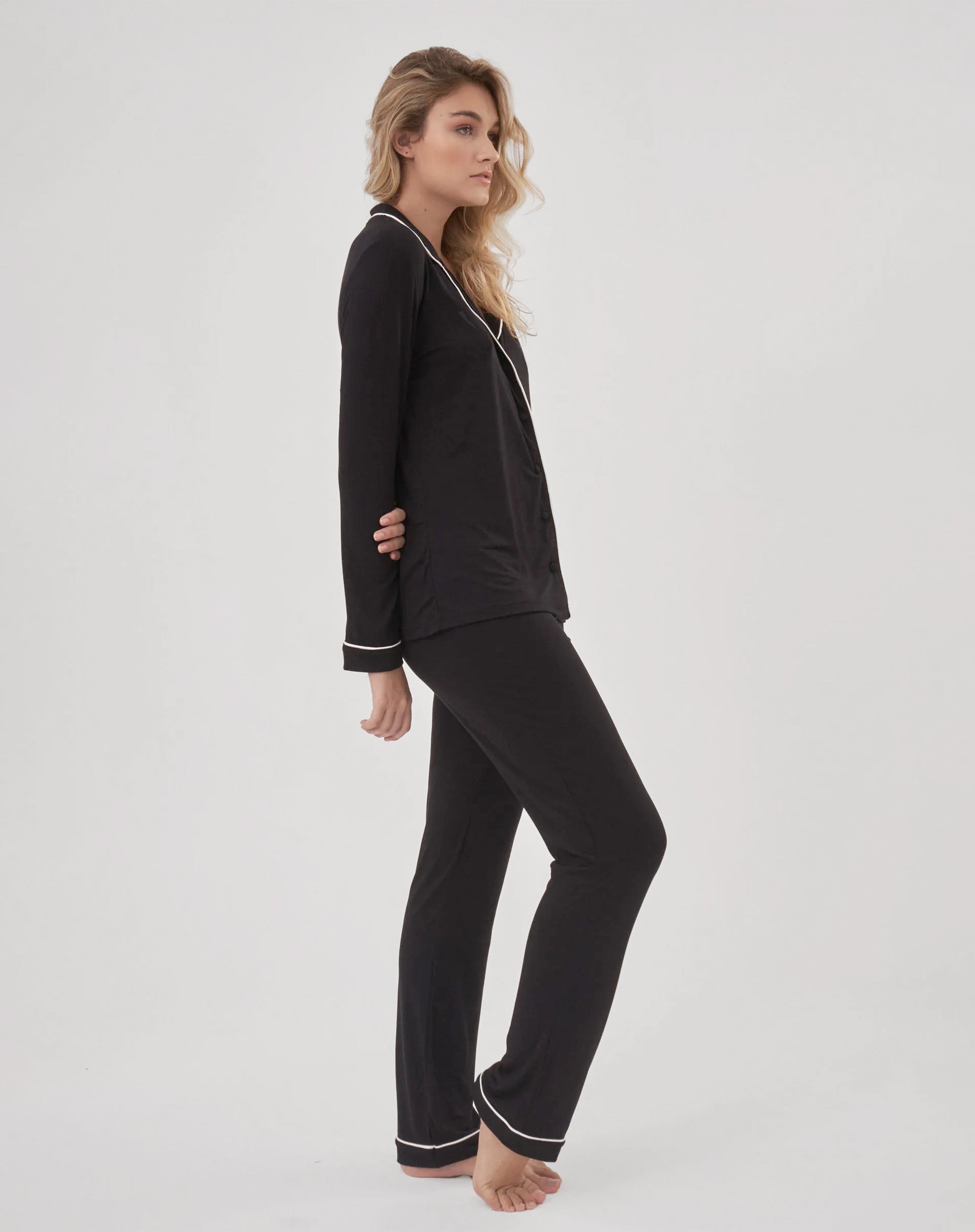 Conjunto de Pijama Longo com Vivo Contrastante - Preto
