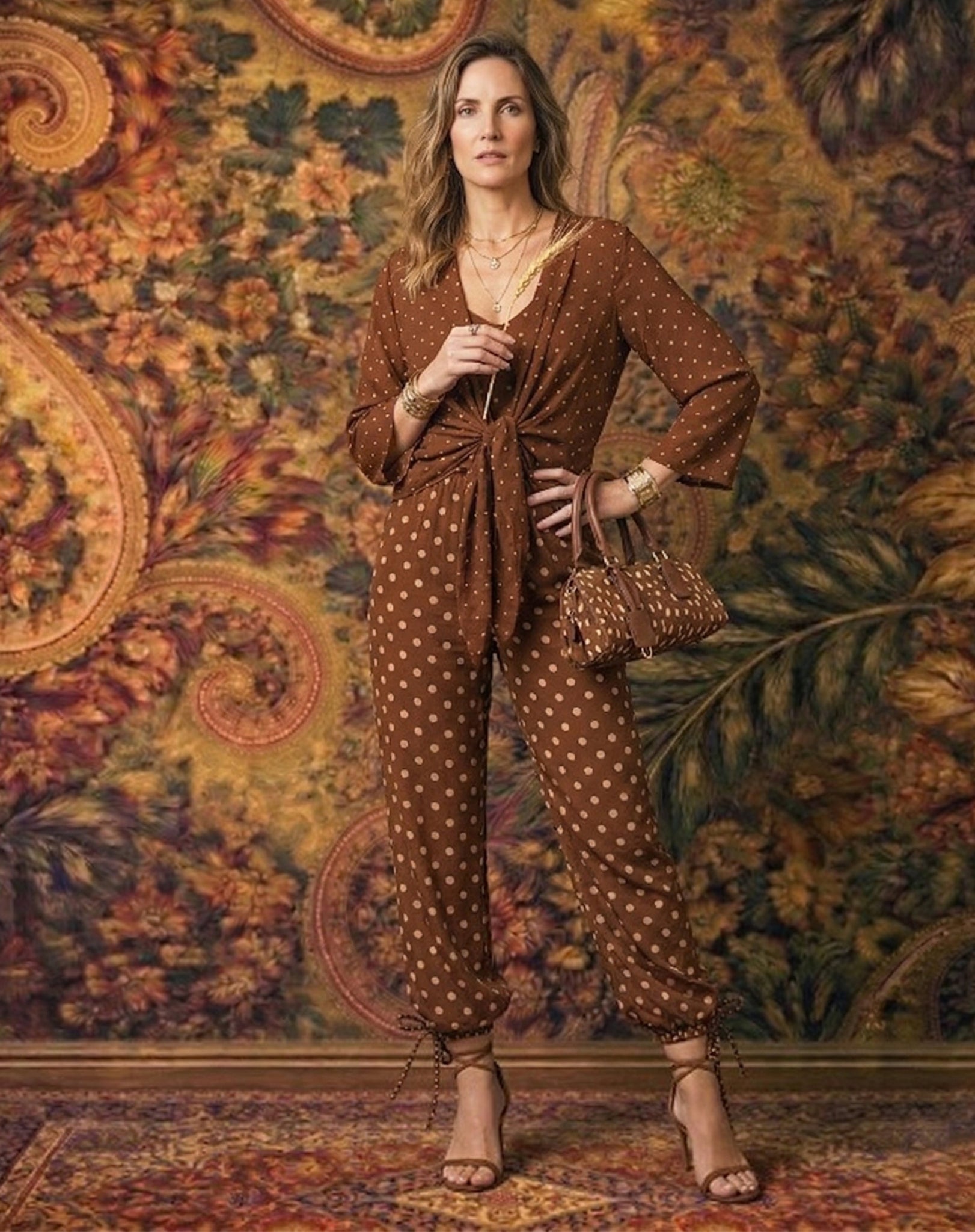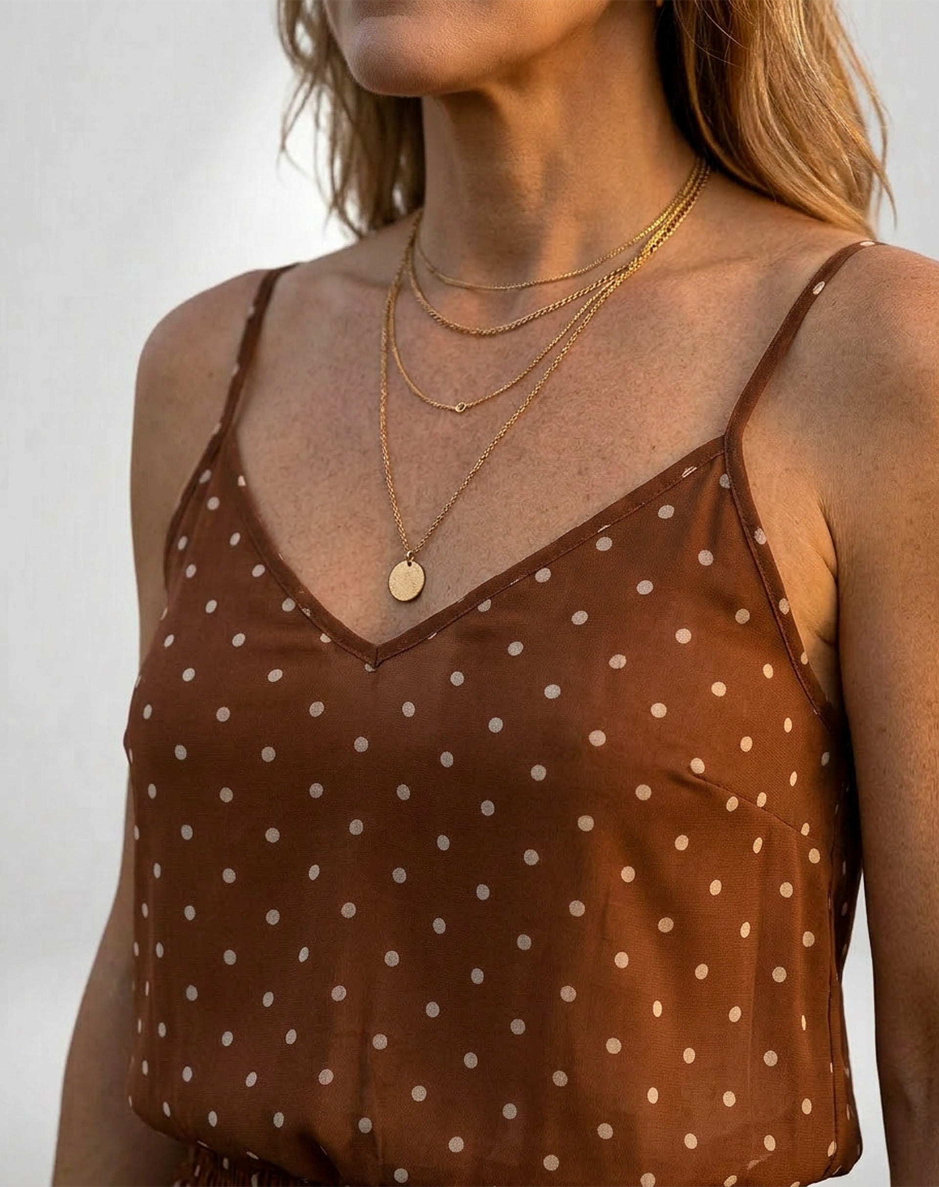 Regata Alças Finas de Chiffon - Marrom
