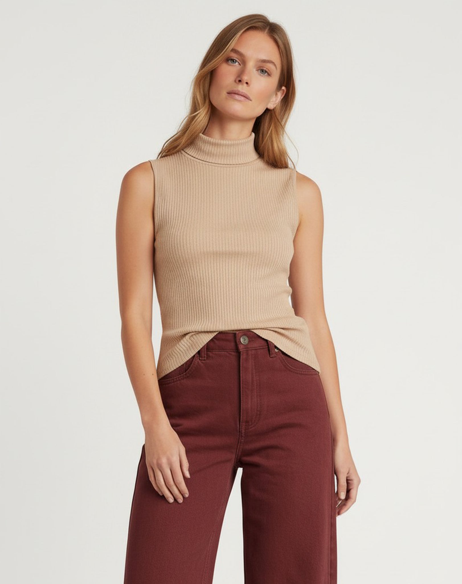 Regata de gola alta canelada, com acabamento sofisticado que valoriza o caimento e o conforto. A modelagem ajustada ao corpo realça a silhueta com elegância, enquanto a textura canelada traz um toque moderno e atemporal. Versátil, é ideal para compor produções do dia a dia a ocasiões mais elegantes. A malha garante conforto e praticidade, acompanhando os movimentos com leveza.