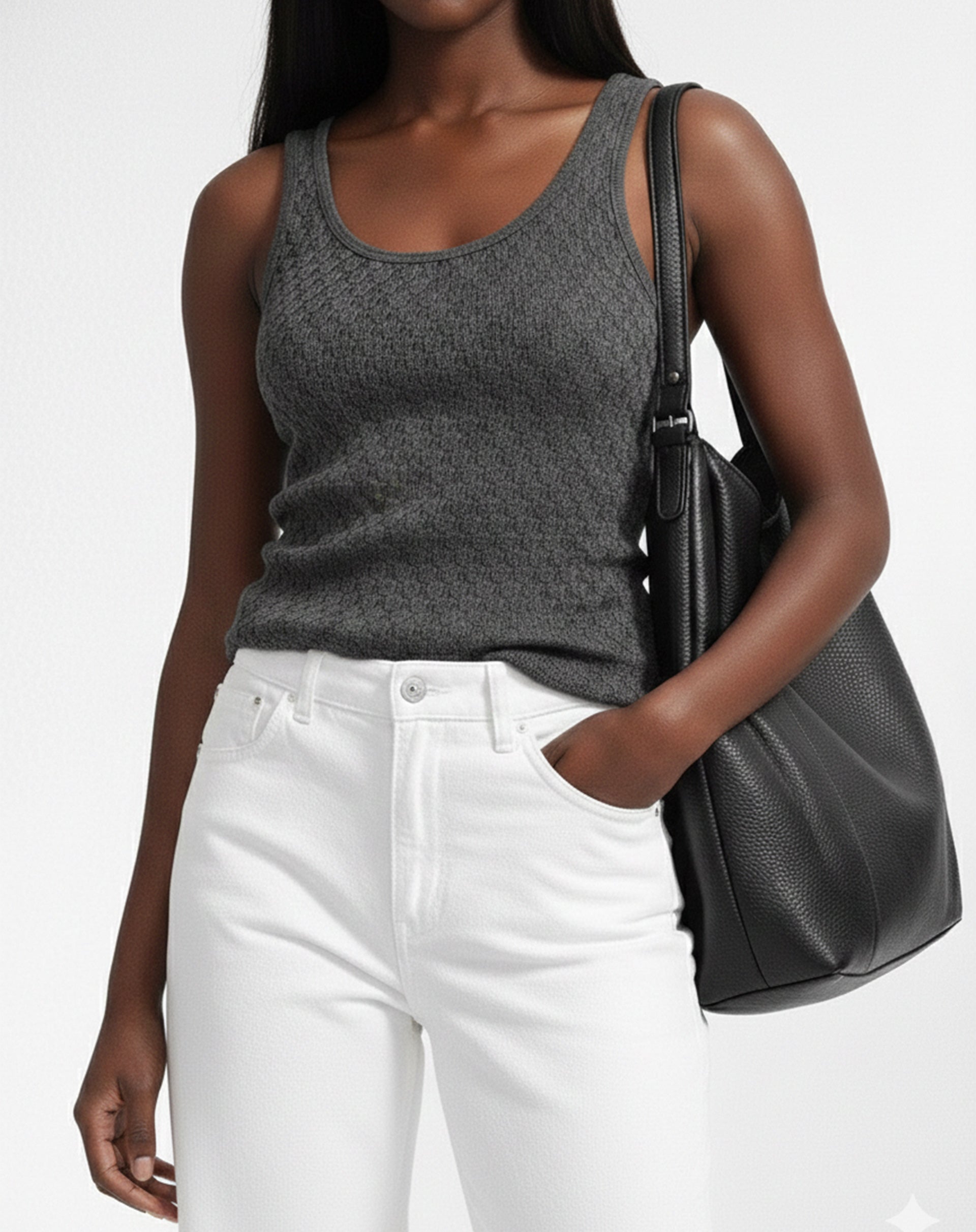 Regata Texturizada com Decote U, que une conforto e sofisticação em um design minimalista. Com caimento mais solto, é a peça ideal para looks do dia a dia.