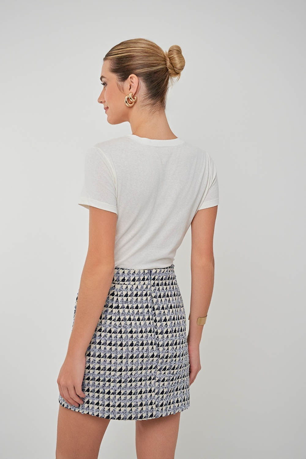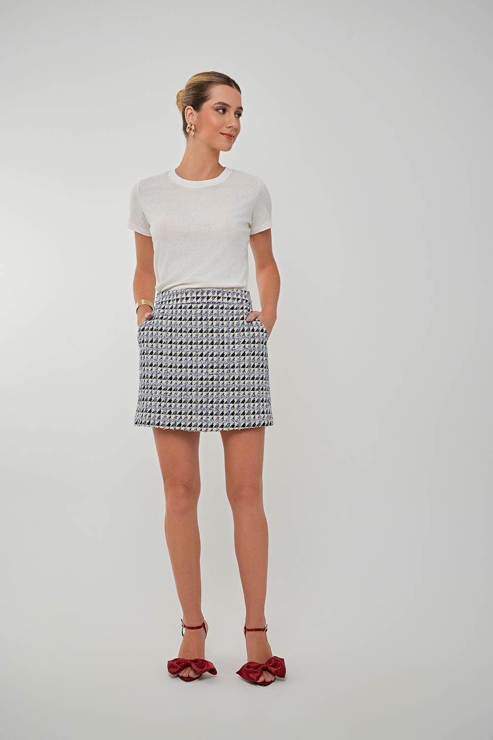 Peça ideal para compor um visual elegante, sem perder o conforto, a saia Lil em tweed é a opção perfeita. A dica é combinar com o casaco Lilac em mesmo tecido e cor para um mood clássico chic. Saia Lil Linda de Morrer confeccionada em tweed xadrez azul e off white. Possui modelagem reta, cos aplicado, bolsos laterais e barra simples.