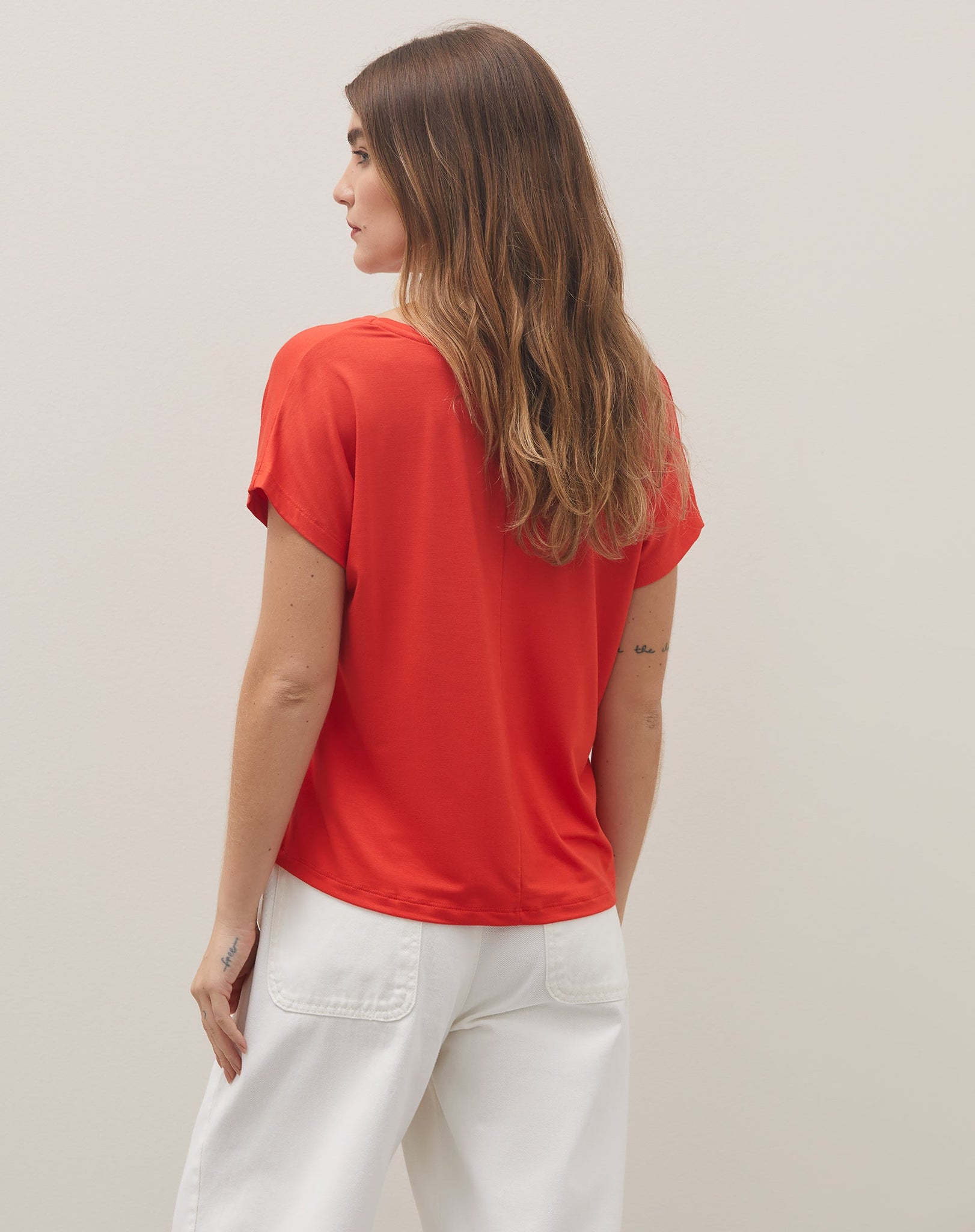 T-SHIRT VISCOSE DECOTE V LISA - VERMELHO