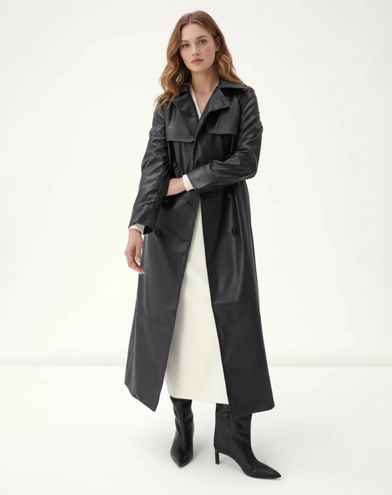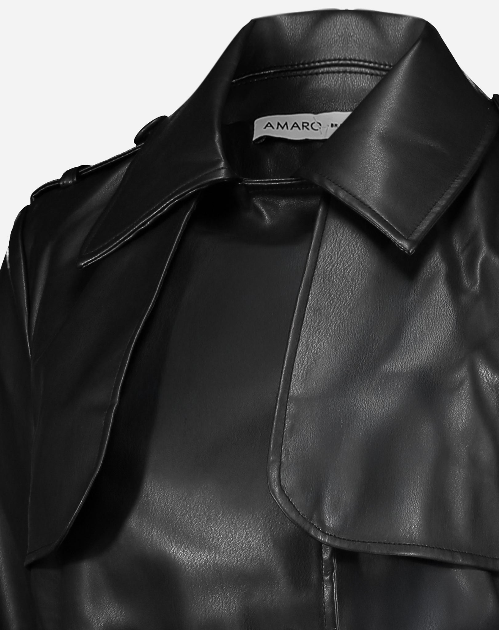 TRENCH COAT COM CINTO PU - PRETO