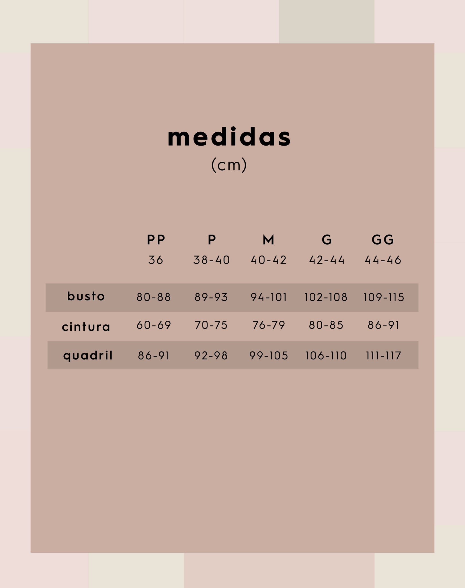 Busto: Passe a fita métrica sobre o busto, ela precisa passar sob a área mais saliente.